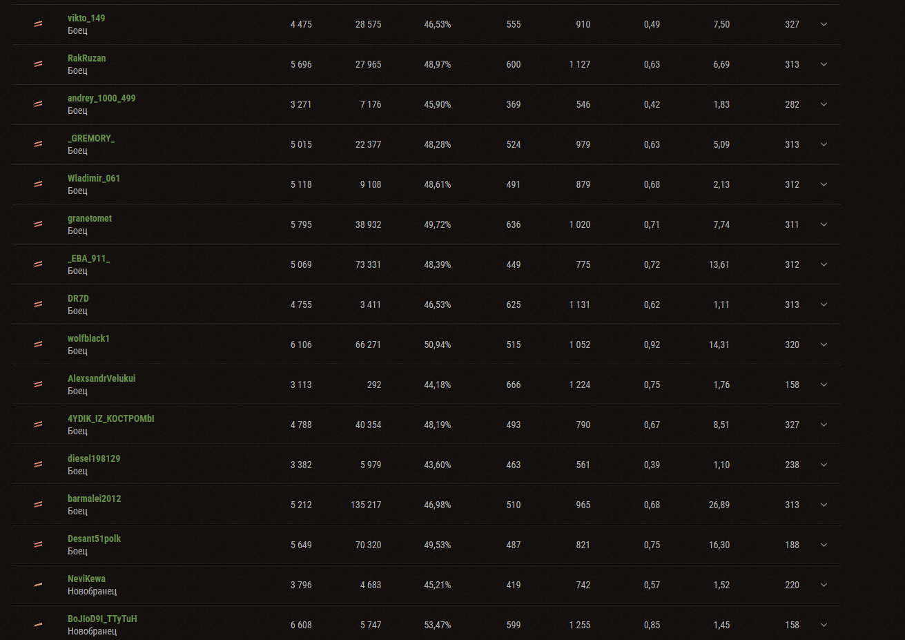 Поздравьте мене, анончики! Мои первые три отметки. Сначала думал качельки будут, особенно предпоследний бой напряг, когда 0,02%, думал все, назад все скрутят. Но, еще один бой, и с минимальным преимуществом таки осилил. >Леха, 6к ммр