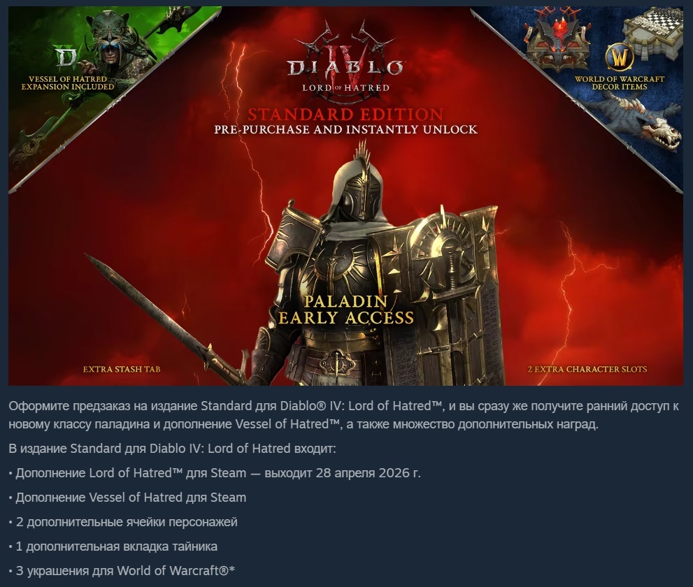 Кстати тут они ебу дали. В предзаказе буквально нет других эксклюзивных бонусов кроме самого паладина т.е. если паладин не нужен то и предзаказ не имеет смысла. За это надо по ебалу дать их менеджерам, упущение большое.