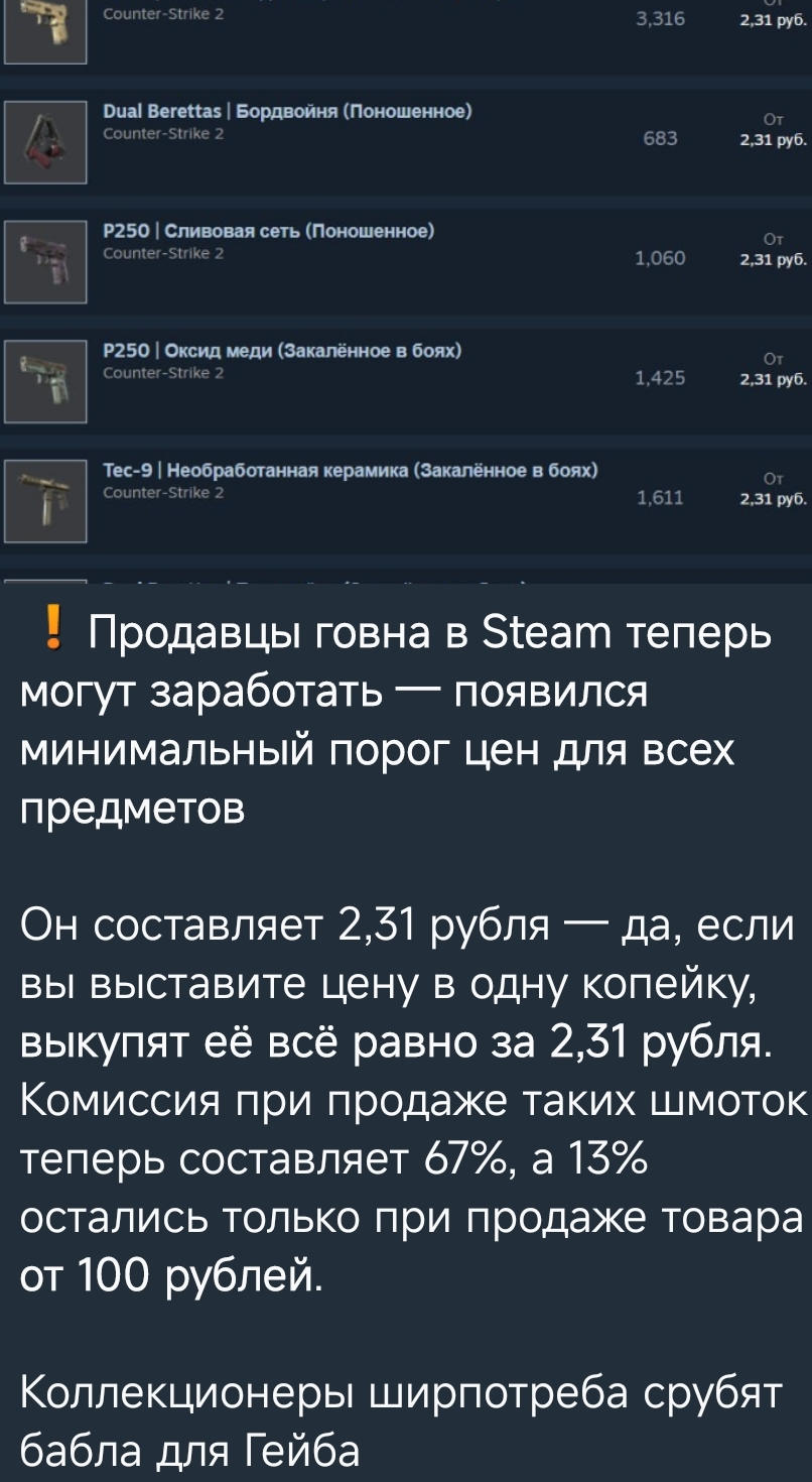 Эти пидоры так сделали, чтобы не делали гигантских профитов с разниц валют, 2,31р это 3 цента как раз американских, а раньше можно было из-за нищеты валют умножать деньги из ничего, продавая на сторонних сайтах купленное за копейки. Сука, как только я хотел про тенге узнать, эта валюта ещё более нищая, чем рубль, они всё испортили и закрыли тему считай.