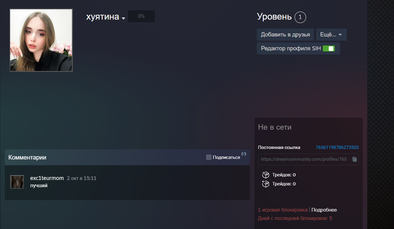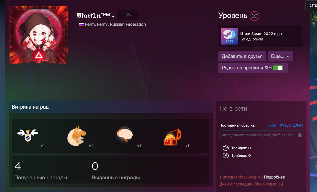 >>50341219 Если ты не знал спустя более 2000 дней вак бан и вообще любая блокировка перестаёт отображатся для других людей в твоём профиле, но всё ещё остаётся для твоего аккаунта.