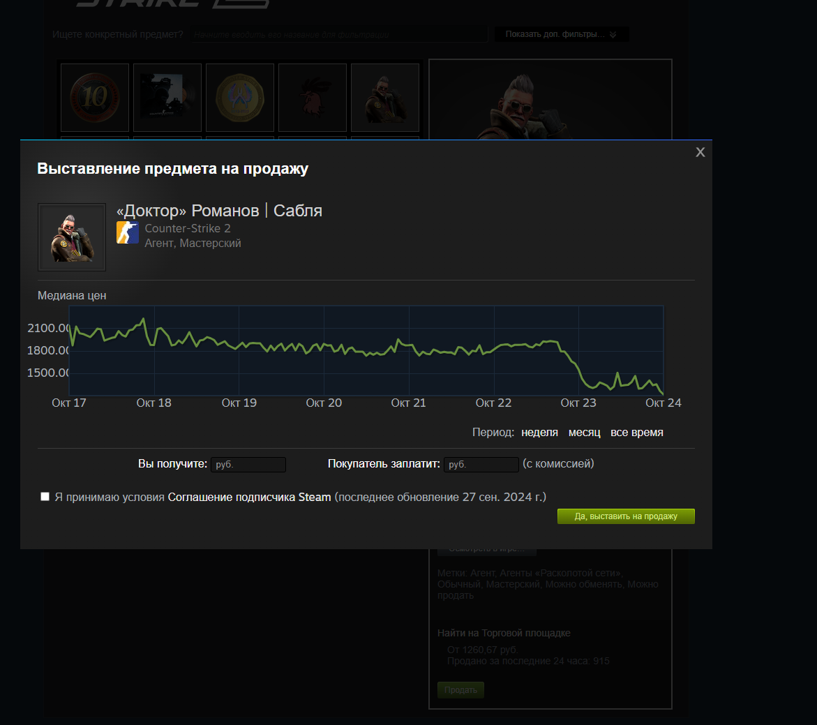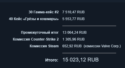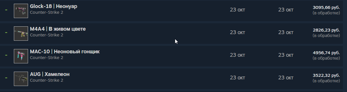 неплохо вышло, я думал щас продам, а цены еще вырастут по итогу всё че я 3 часа назад слил, уже на 500-1000 упало, и это мне видно только чистые деньги, которые придут, а так там еще комса 15% стима для покупавшего была крч заебемба, говно слито, можно и нищенож взять или вывести потом, или игрульки дебилки купить