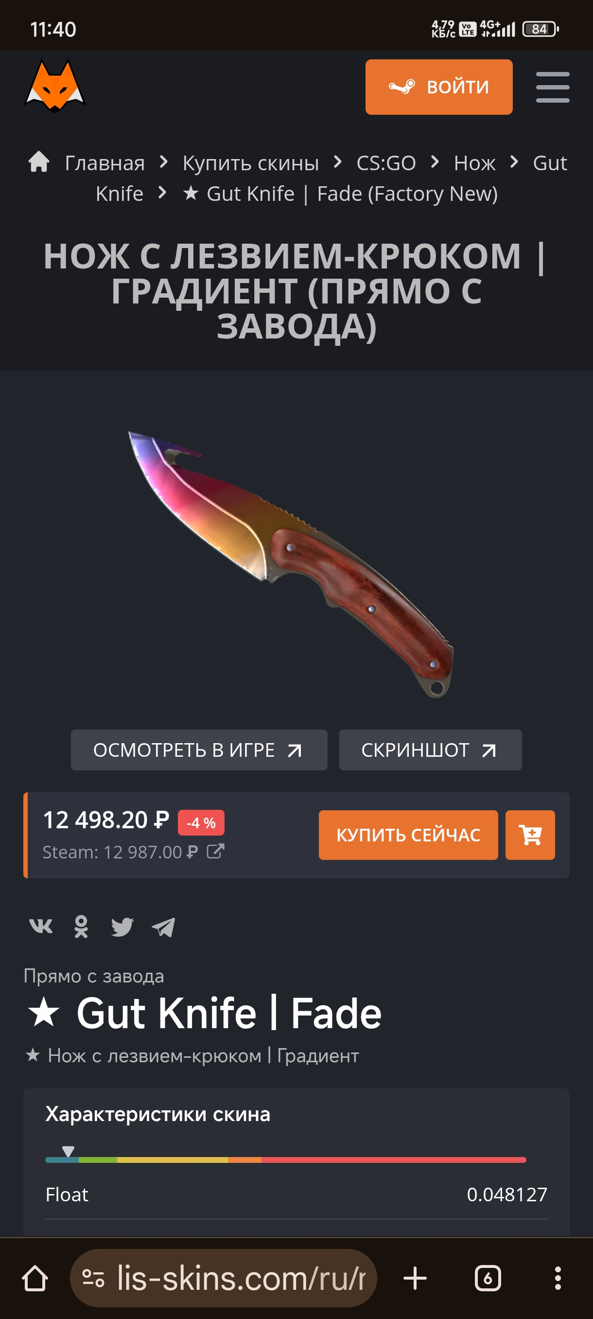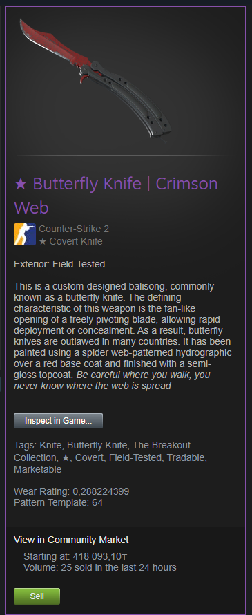 Я в последнее время в кс не играю и вроде как какие либо игры в стиме покупать не планирую. Последний свой ножик продал 14 июля этого года.