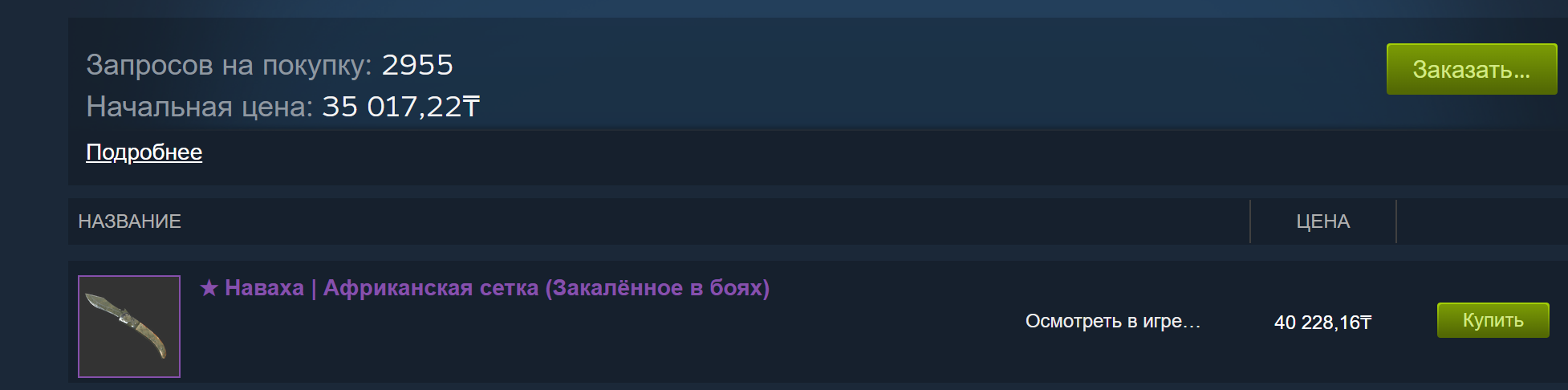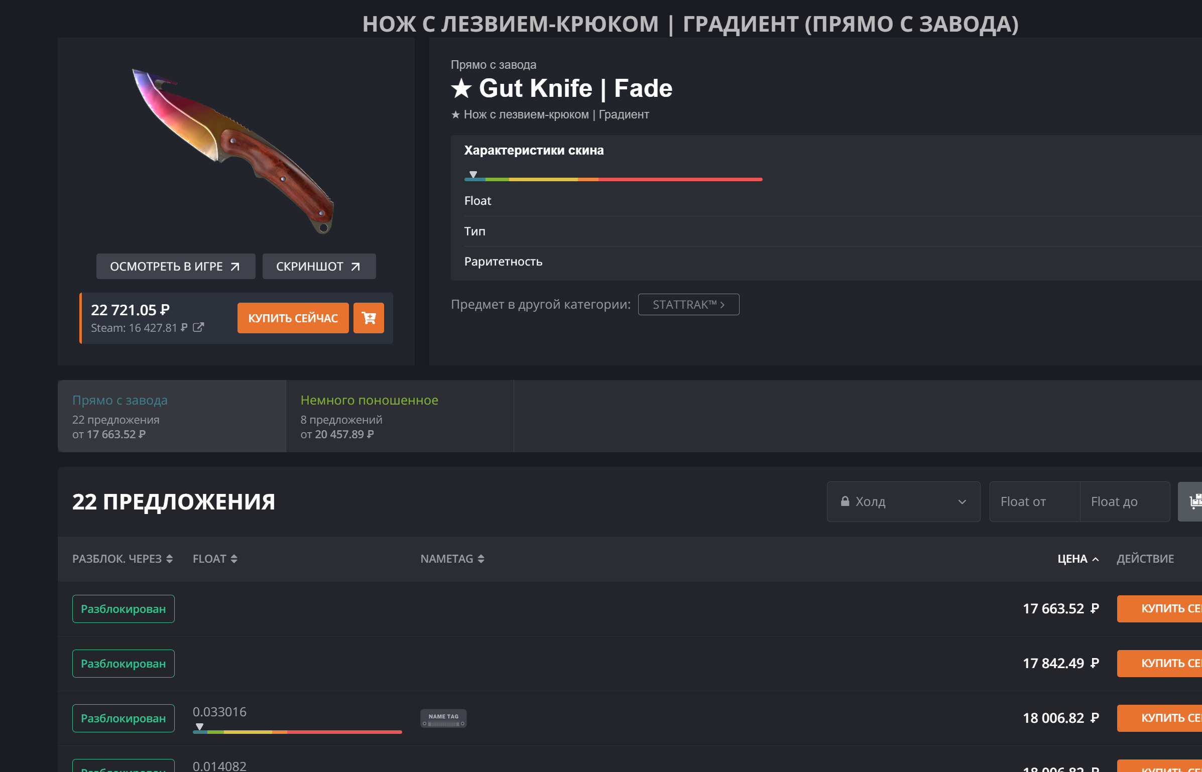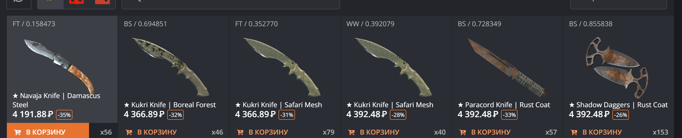 В четверг мне кажется все кроме первых ста человек хуйца пососут, щас куча людей ринулась на инспект сервера и рассматривают потенциальные покупки, слишком много желающий, чтобы ножи рухнули еще ниже