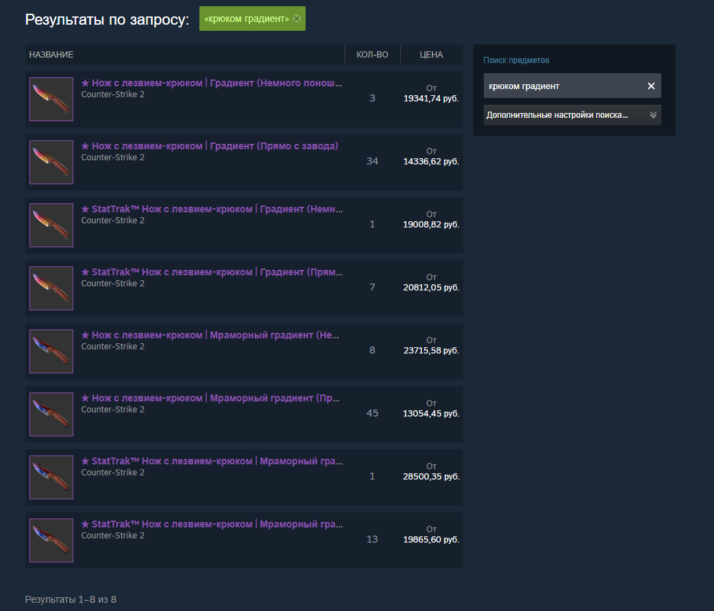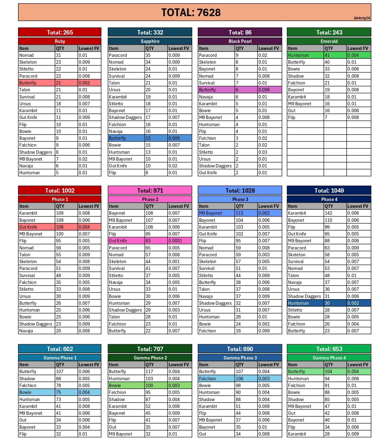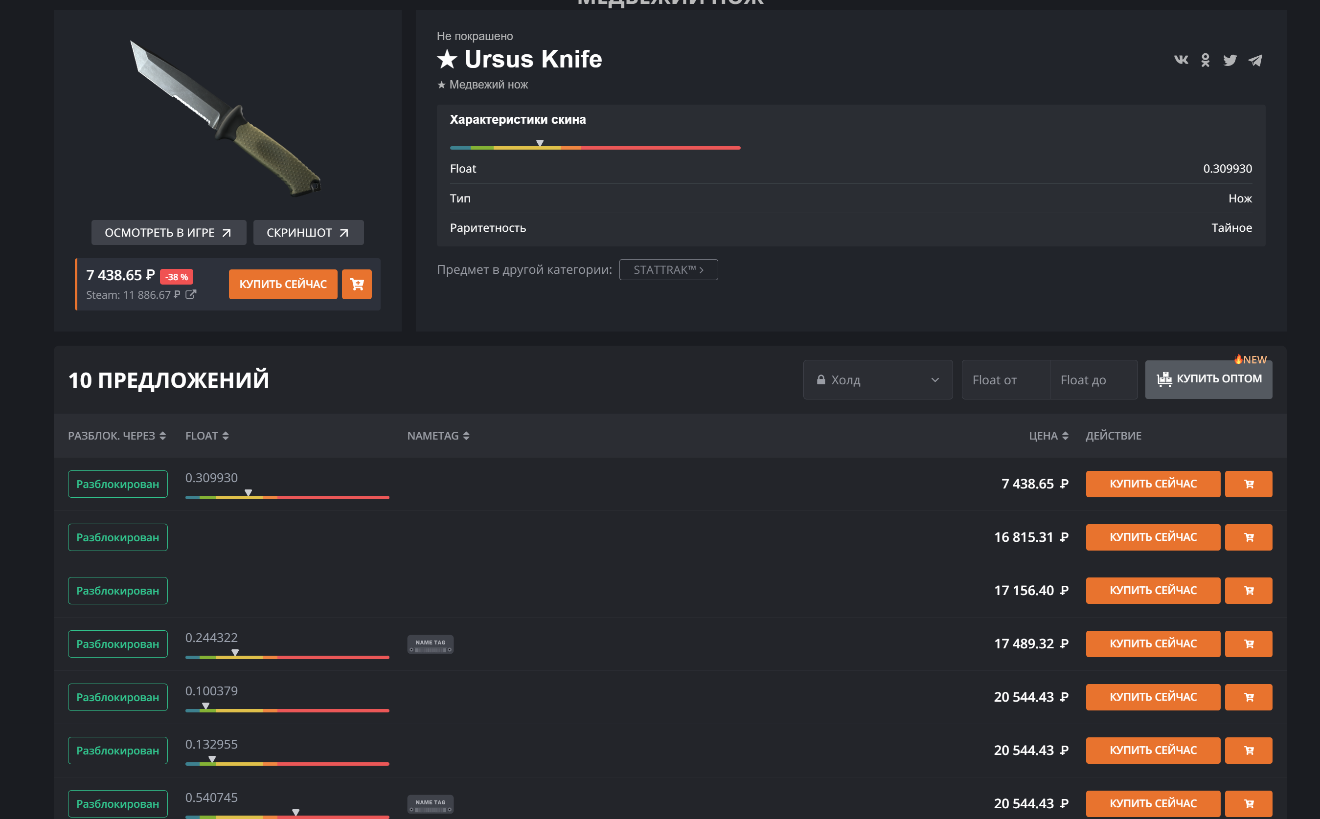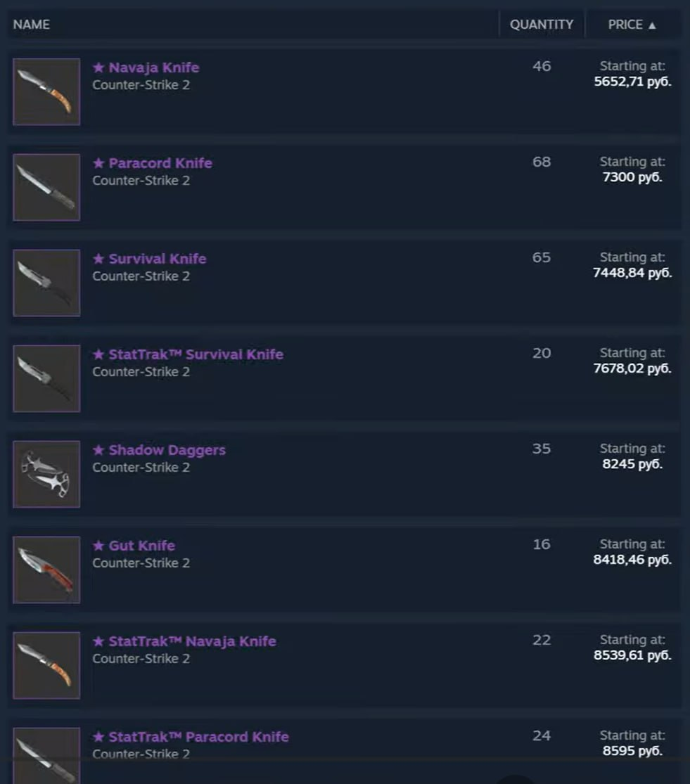 В четверг мне кажется все кроме первых ста человек хуйца пососут, щас куча людей ринулась на инспект сервера и рассматривают потенциальные покупки, слишком много желающий, чтобы ножи рухнули еще ниже