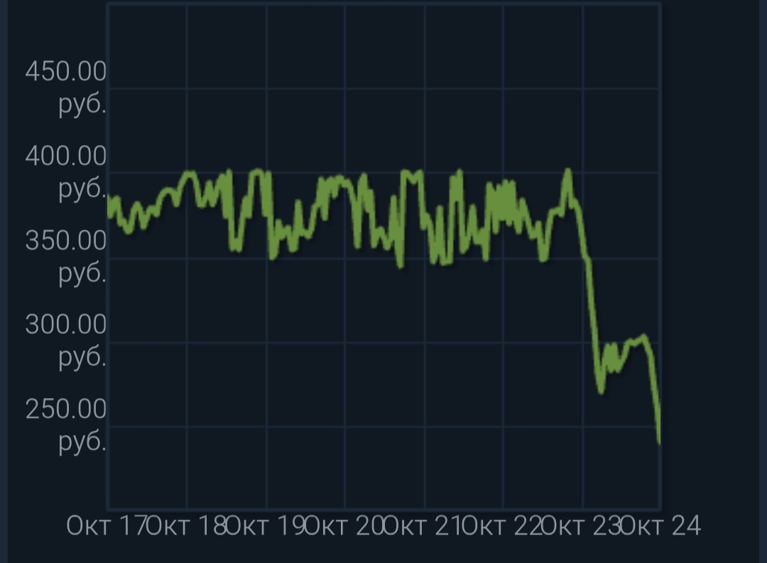 >>50353199 Кто-то обрушил рынок. Прямо как на реальных биржах ситуёвина. Представьте ебала тех кто недавно за дорого покупал, то, что сильно подешевело сейчас.