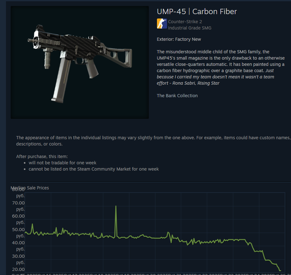 Конец трейдбан приходится на четверг, есть окно для обновы в среду или раньше. Как вариант могут как-то подкрутить гайки в этих контрактах - требования или какие-то лимиты. Поднятие до 10 итемов в трейде точно нет, потому что это вернет все к старым заоблачным ценам, этого точно не произойдет. Но вот гайки подкрутить могут. Только пока и для этого причин нет, народ все сметает и гемблит хуже чем в казино. Потому что в казино у тебя ставка может быть 100, 500р. А тут один ролл нахуй 15-20тысяч. И это буквально, кто в теме как на этих говносайтах с открытием кейсов, где есть ножевой кейс и цена открытия 15к где из огромного пула выпадают ножи блять. И его доят пока не выпадет что-то путное.