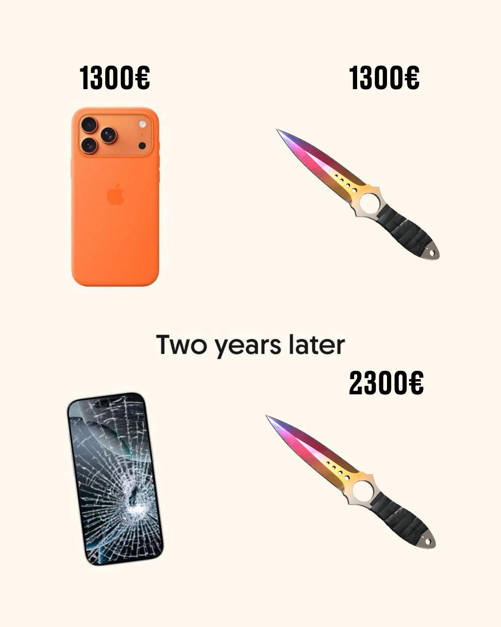 Какой же это кайф. Наканецта инфляция на ножи пошла нахуй. На нг куплю себе ножик. Я считаю, что это победа. Учитывая, что на скачке мой классик с 55к упал до 20, то к нг думаю уже м9 по 20к будут лежать.