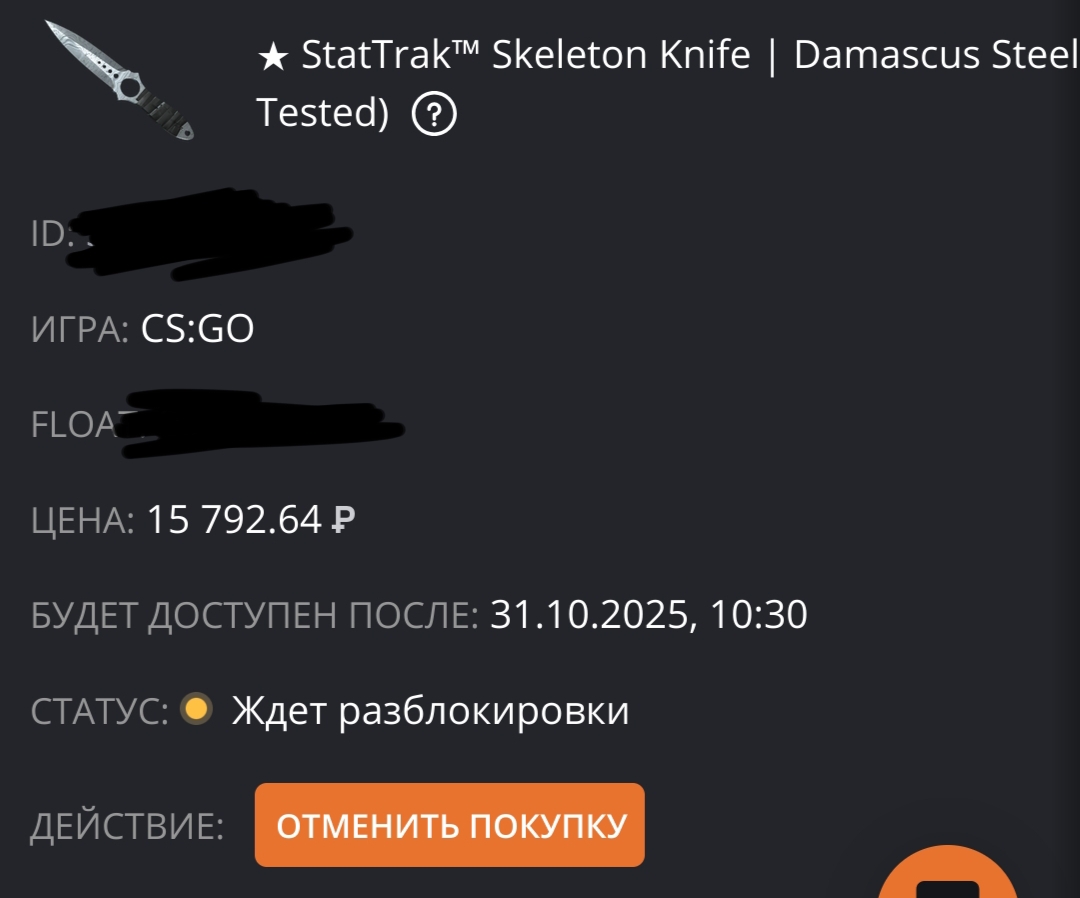 >>50363737 посмотри чат тг их кому-то отменяют предметы купленные без холда потому что большая разница цен чем в стиме, что-то в обработке, что-то доходит (но с маленькой разницой по цене). щас рынок не стабильный, они просто отбивают свои деньги хоть и наебом