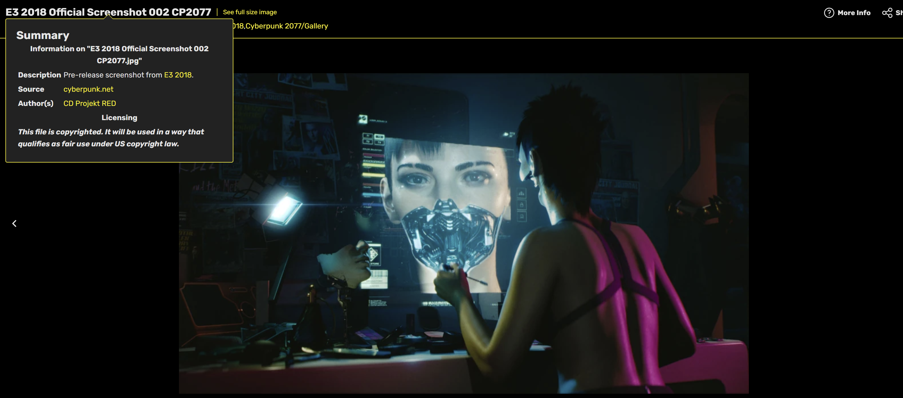 E3 2018 Official Screenshot 002 CP2077.jpg DescriptionPre-release screenshot from E3 2018. Sourcecyberpunk.net Author(s)CD Projekt RED