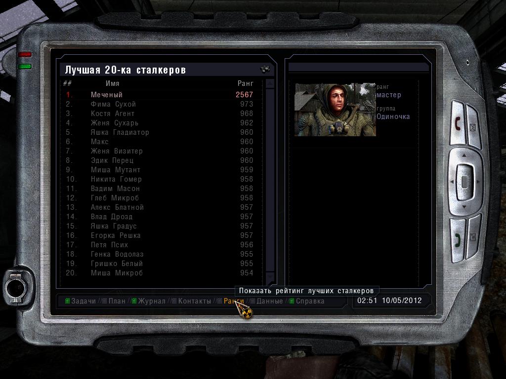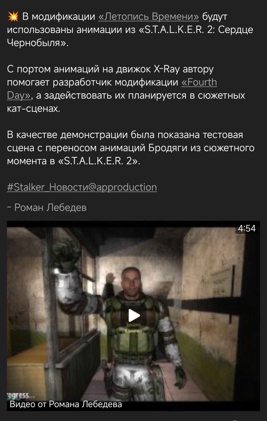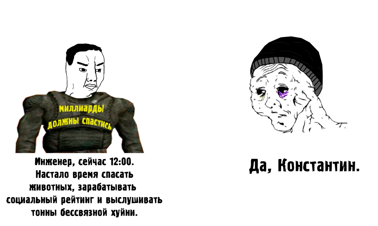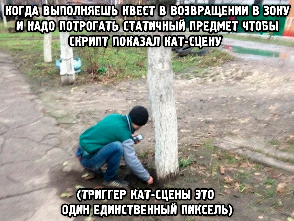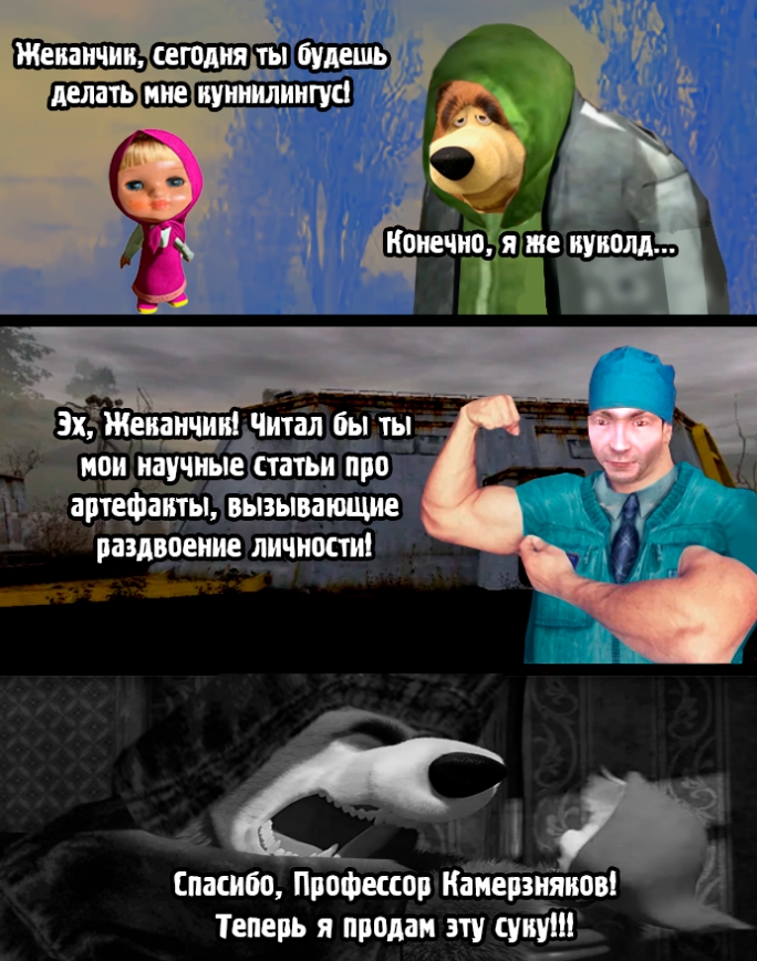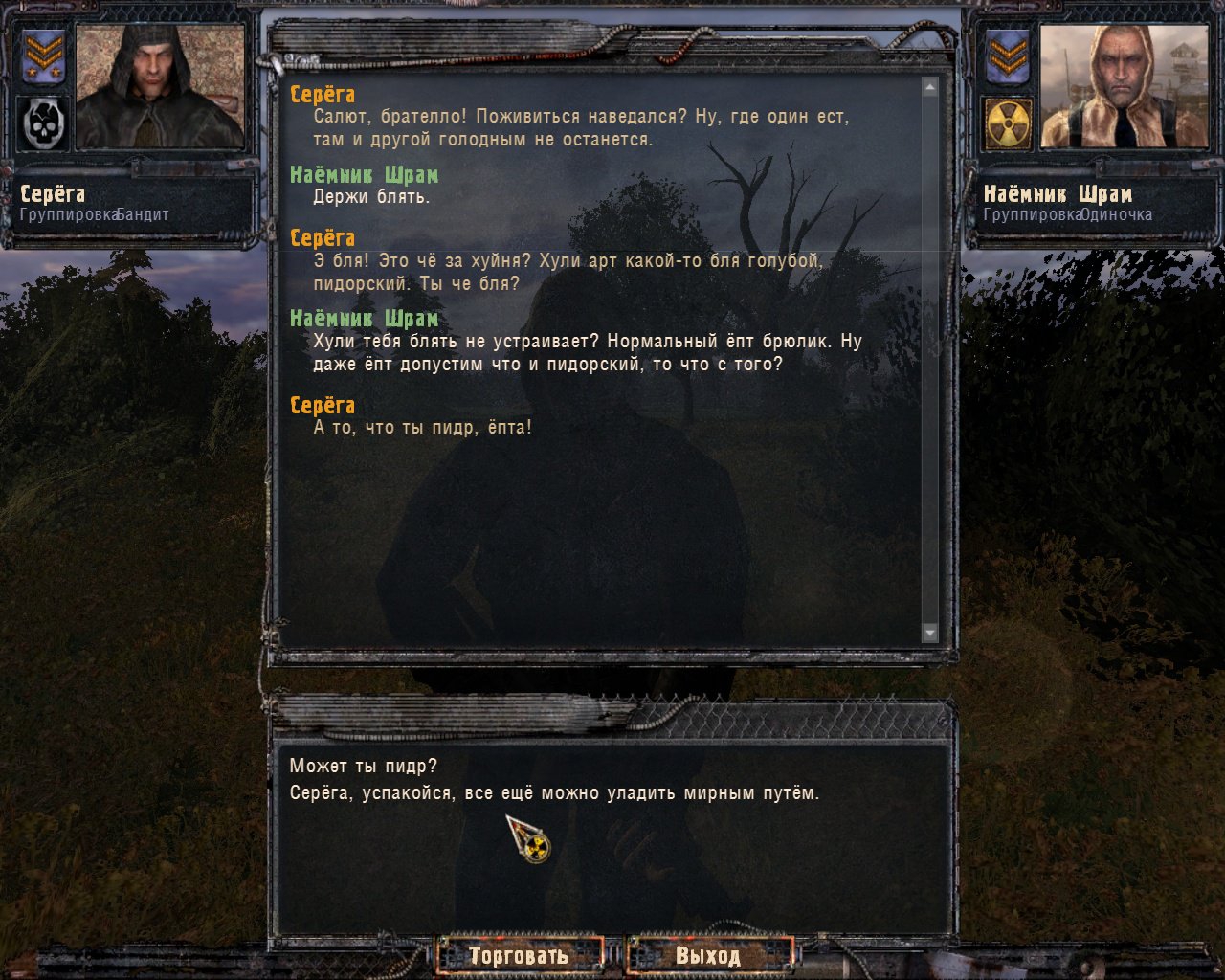>>50308085 Олег Яворский: Со своей группой сделал легендарные треки, на которых до сих пор наживается новопыс. Пробил поездки в ЧЗО, когда это еще не было популярно, и ездил в первую из них для сбора материалов. Занимался переводами. Юрий Бесараб: Написал четыре рассказа на конкурс, которые попали в сборник, так и оказался в КМах. Евгений Кучма: Исправлял русский текст, занимался тестированием, у аддонов - локализацией. Подшаманивал со скриптами, уровнями и геймдизайном. Новопыс: Ряя, я КМ, у меня лапки из жопы
