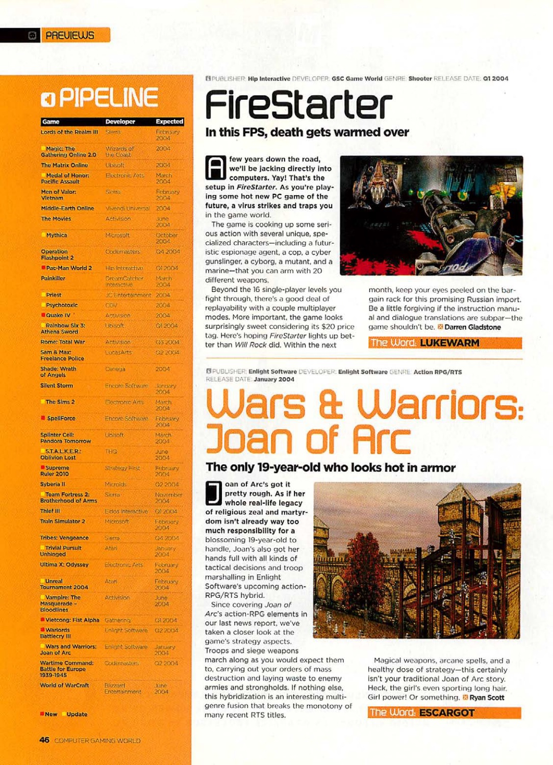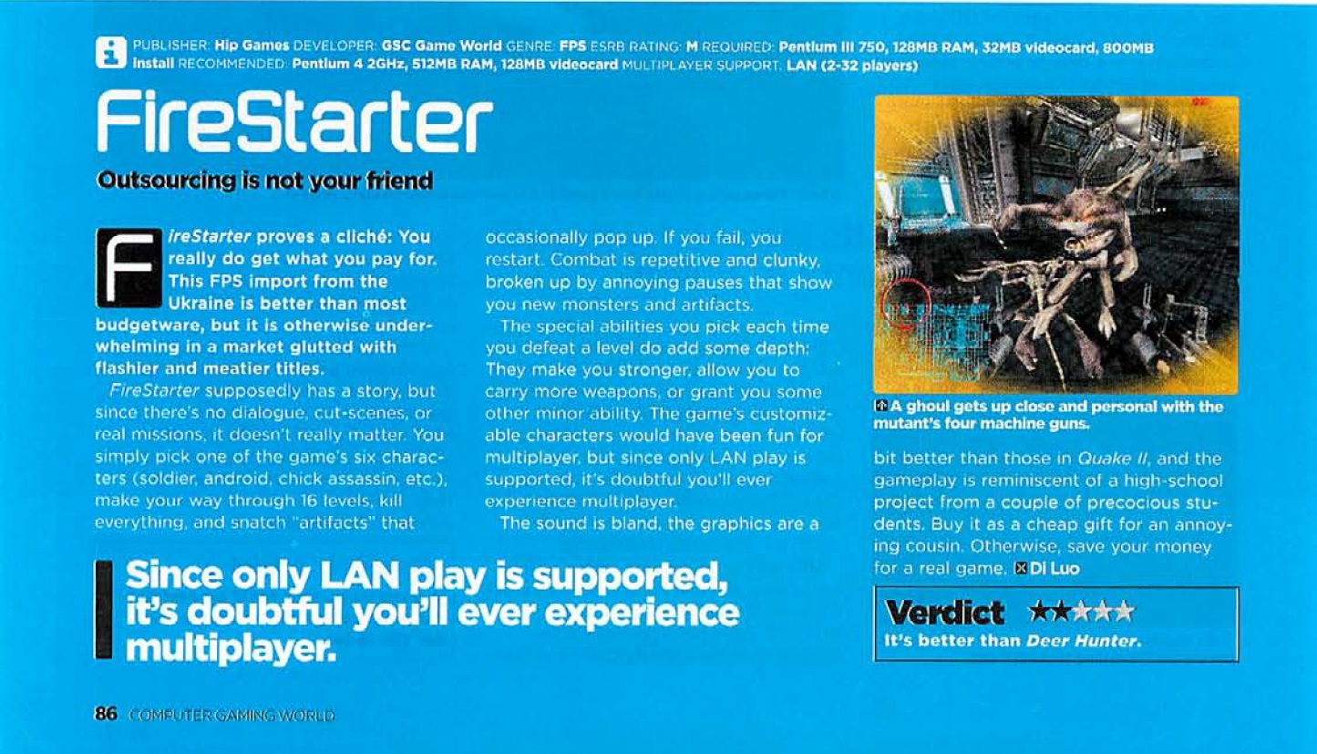 >>50312976 Firestarter (Который тоже планировали сделать трилогией) Xenus от тогда уже отдельной Deep Shadows, и рецензия на HL2 - чтобы понять степень суровости журнала
