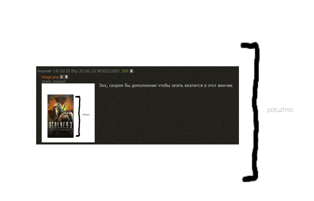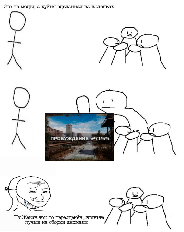 Напоминаю, что тред сталкера на сосаче состоит из: Григаплотей - постоянно кидаются на любую критику сталкера 2 им. жени хрюкоровича(становятся едой буквально для всех, да и вообще их забыли спросить). Бюреров-храуфагов - сидят в своих немытых подвальчиках, кидаясь говном во всех, кто решает отойди от канонов(их шизофазии, которая каждый раз меняется) по оригинальной трилогии, особый бугурт на с2 по многим причинам, объективным и/или нет(чаще нет). Билдозомби - стёрли свои 3см приборы на дрочке билдов, пытаясь найти суть ТСС(её нет, или есть?). Полтергейсты-отрицалы - пикируются с бюрерами, им не нравится всё, что есть в с2, но ничего не делают, чтобы показать как надо по их мнению(которое как жопа, есть у каждого). Новопыс-отмычек - вкатились во время с2, особо мягкие становятся едой для первых 4х категорий, когда высказывают хоть что либо, что им не нравится Чады-сталкеры-ветераны - ржут с мутантской пиздобратии и идут дальше, или подкармивают фауну, когда тред загибается.