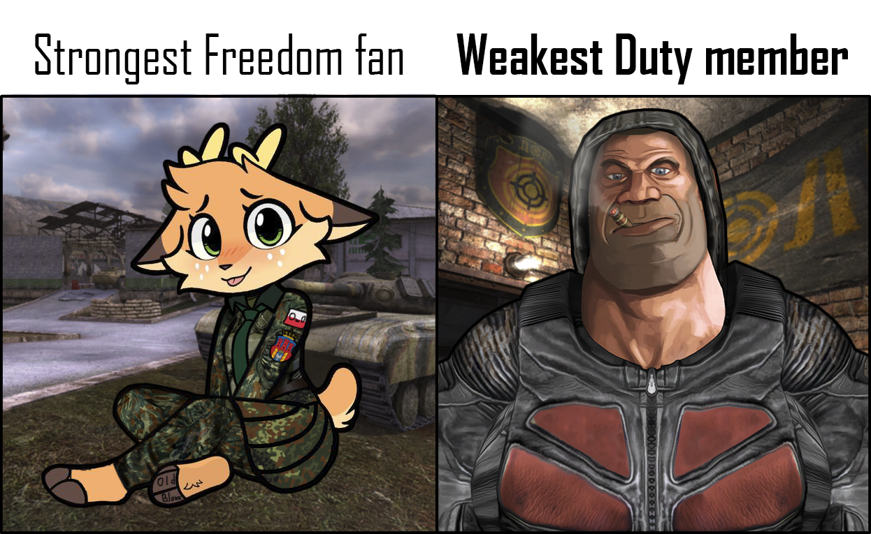 >>50306853 Долг, конечно же. Они за традиционные ценности. Смертельным аномалиям, опасным мутантам, а также анархистам и бандитам и гомосексуалистам не остановить «Долг»! Мы победоносной поступью идём на помощь гражданам всей планеты!