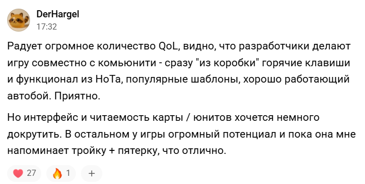 Раздражают мелкие иконки юнитов, хер знает кто там у нейтралов в стеке сидит, хинтов нет, хоткеев нет, но это наживное.