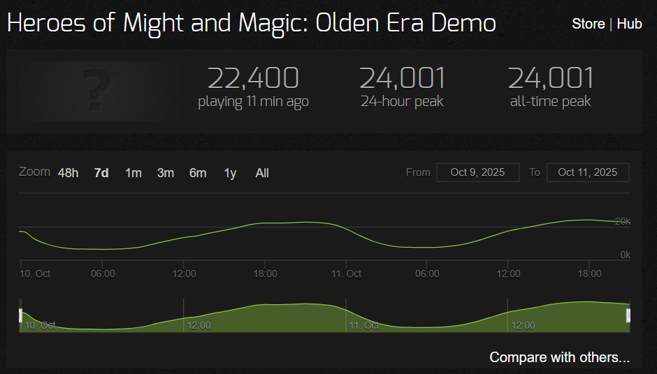 Ну что мы видим, интерес не упал, пиковый онлайн стал больше. Не часто увидишь такой интерес к обрезанной демке, которая более популярна чем любые предыдущие герои. Стримерам также нравится, некоторые папашки из хоты прям залипают. Ребят, олден эра победила. К раннему доступу пофиксят интерфейс, всякие штуки по мелочи и жуков, а также дадут мачмейкинг с ладдером и это будет полный разъёб. Лучшие герои в серии, без шуток.
