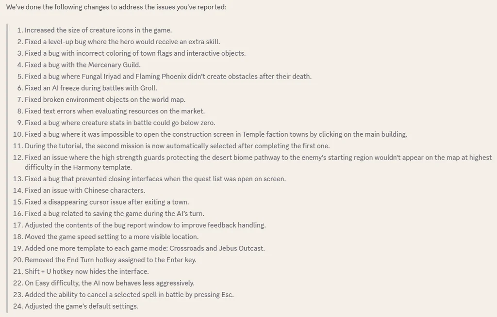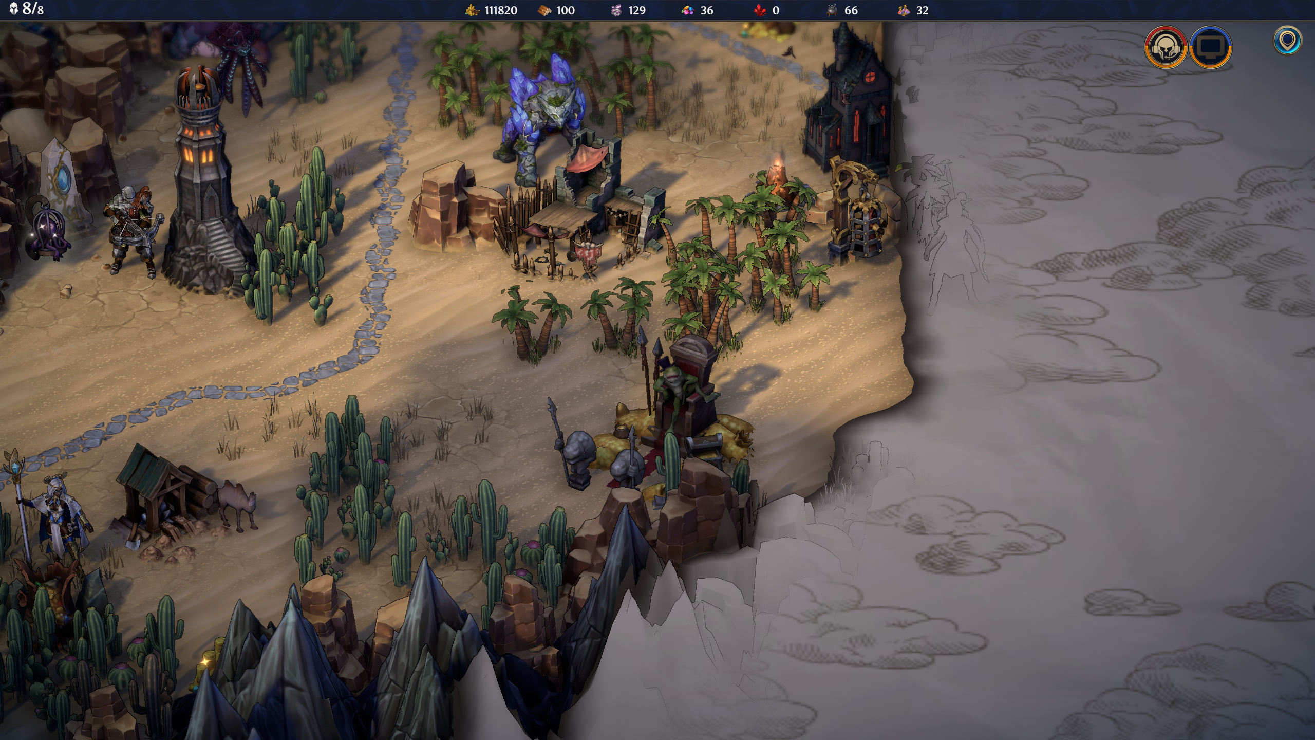 >We’ve heard that the the computer opponents are a bit too aggressive on lower difficulties so we tweaked them around a bit! You’ve also told us you would like slightly smaller, less resource-packed templates to try out so we added one more template to Classic and Single Hero modes for you to enjoy! Play them over and over — all our templates are used by the Random Map Generator to deliver you a different map result every time!