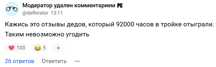 Чё-то кекаю, как перепуганные трёшкинсы на всех стримах спамят: "Да не заменит она тройку", "Да пару дней поиграют и в трёшку вернутся", "Ребят, тройка - это бессмертная классика".