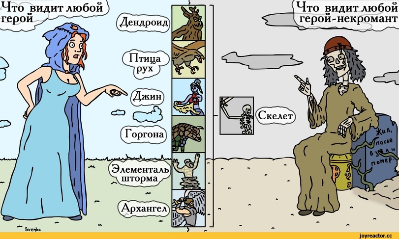 Чел, ты реально клоун, который или умело троллит, или реально на столько тупой, что не в курсе, что магия может не только наносить урон но и, например, тупо запретить твоим скелетам стрелять или каждый ебаный ход накидывать на всю армию непробиваемый щит.