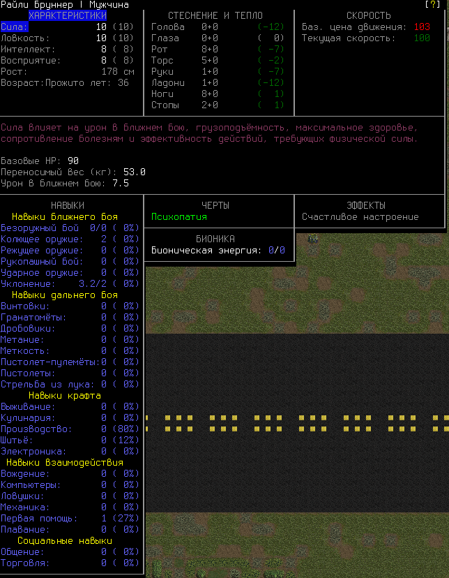 >>50321607 Короче всё так и есть. Сейчас лично затестил. Зомбаки действительно прыгают обычный зомбак просто по диагонали тайл тупо пропустил. Но делает он это не всегда а примерно раз в 15-20 ходов, может меньше. Он в любом случае медленнее тебя и от него можно уйти просто пешком. Одежда на ногах и обувь даёт дебаф к скорости передвижения но если там не что-то сверх сковывающие или тяжёлое это терпимо. В твоем случае кросовки дают +1 и джинсы +2. В окне персонажа можешь нажимать tab и стрелочки для подробностей.