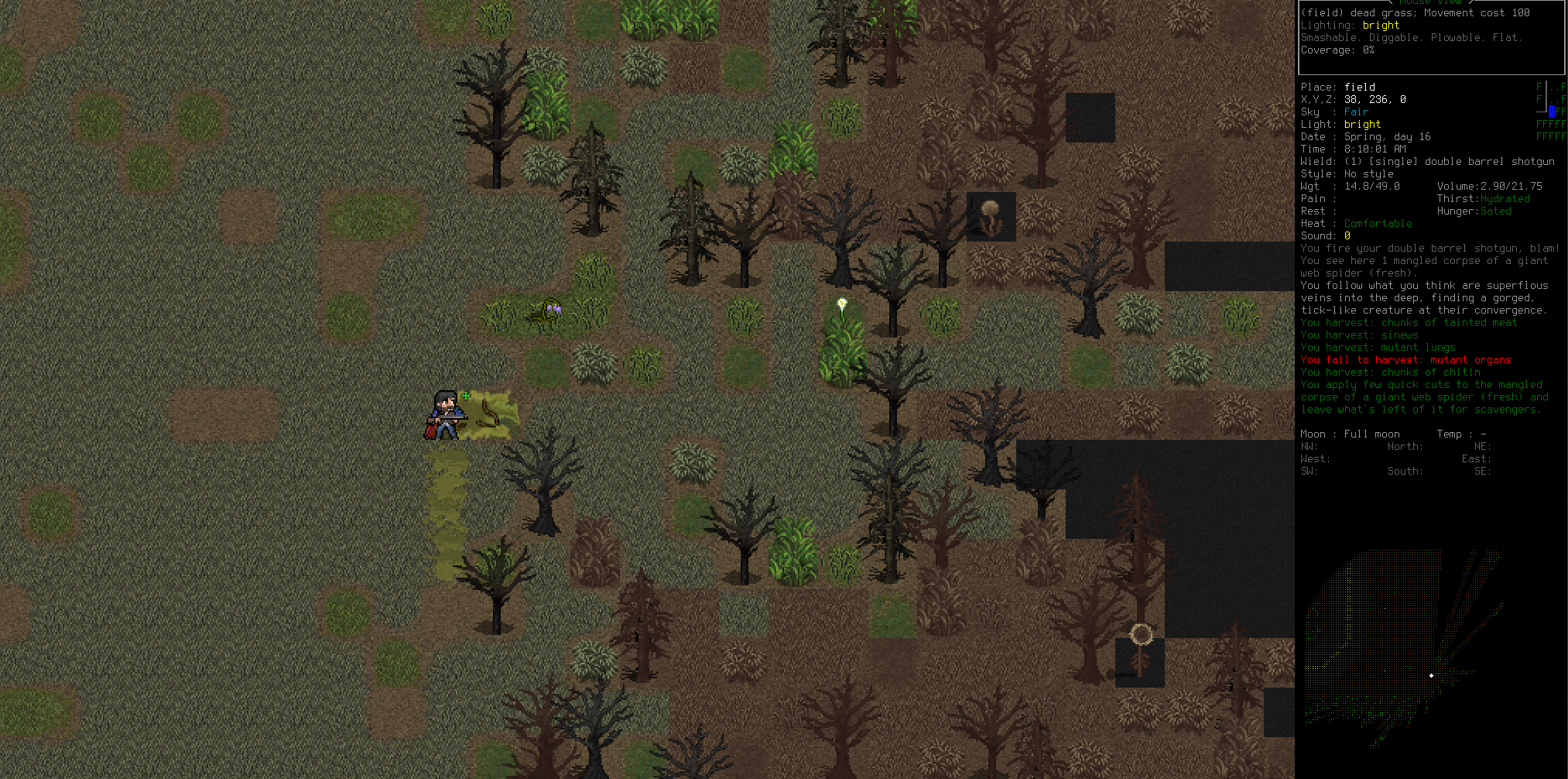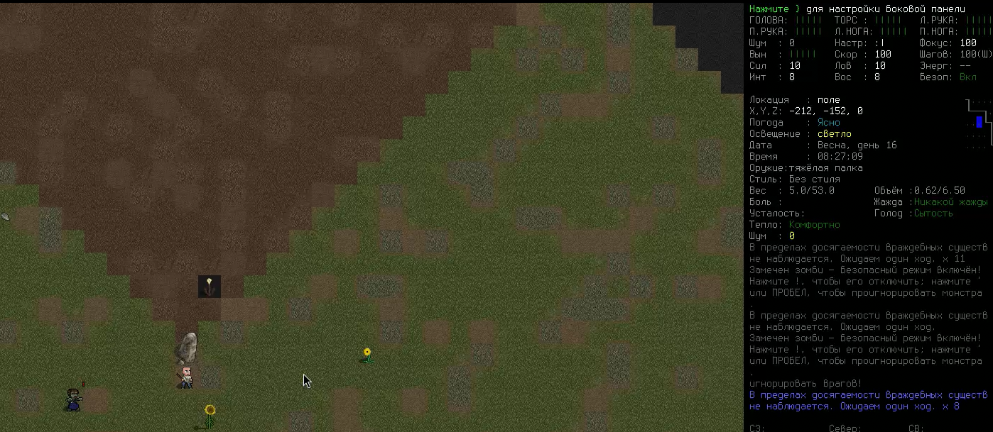 >>50320957 >Ты в настройках ничего не делал? Нет, скачал с гитхаба версия 0.8.0, статы видно на >>50319949 поменял тайлсет на андеад чтобы вам привычней смотреть было. От него можно убежать если убегать, но если стоять и жать таб то он подходя начинает "прыгать" по тайлам.