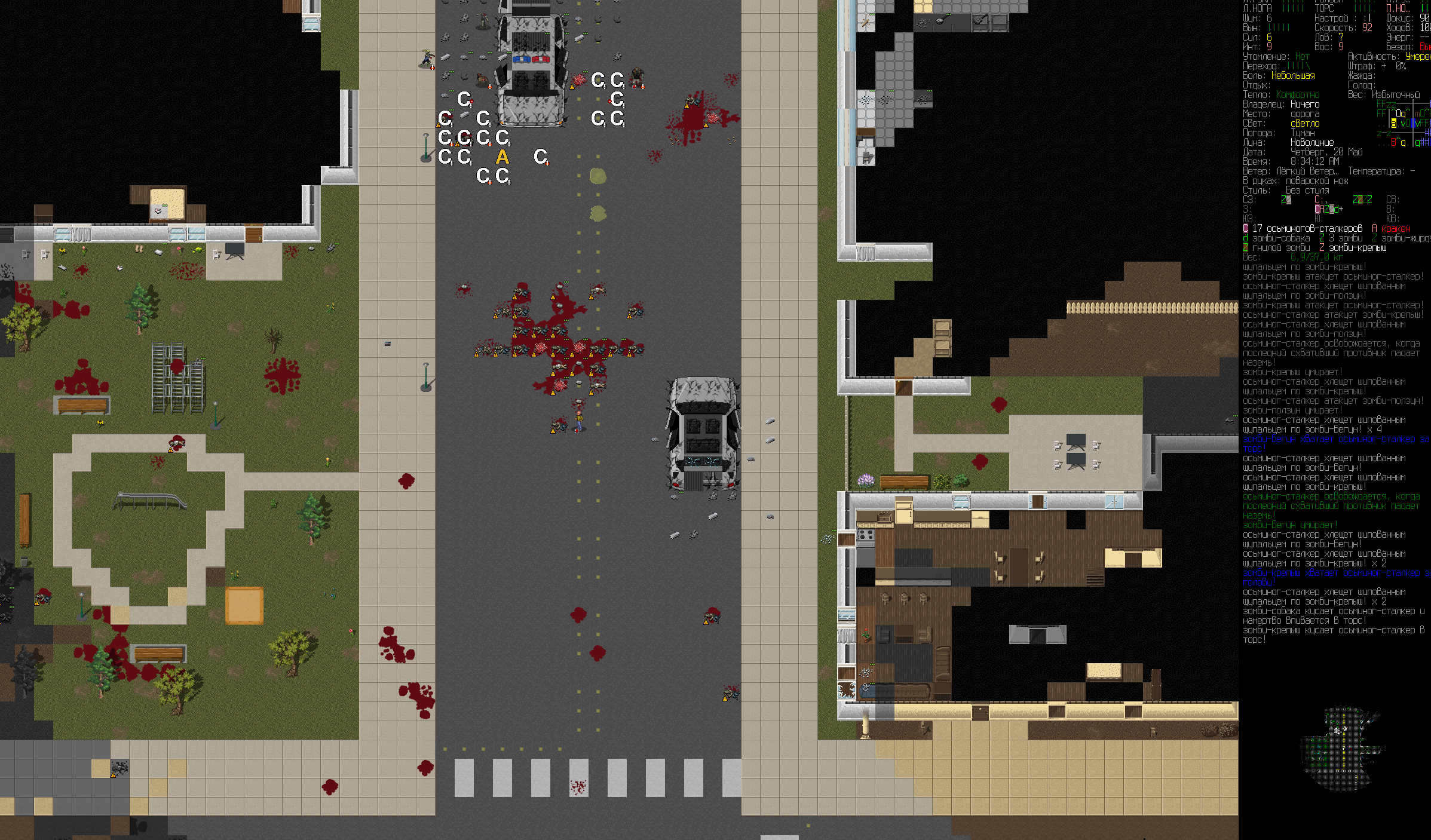Короче я не, я выкатываюсь, тут ещё и простые зомби постоянно прыгают на 2 тайла игнорируя кусты столы и прочее, такое я не хочу играть. Выживаемость тут выше конечно, с десятками повреждений я хожу пержу, но такие же минусы только в другом.