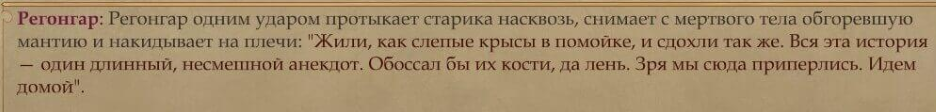 А у вас бывало такое, что наемники уходили сами по себе? У меня куда-то Абеляр пропал. Мы с Региллом пошли к Хеллнайтам, Абеляр остался ждать в Дрезене. Возвращаюсь - Абеляра нет, а все шмотки, которые были на нем надеты, мне в сумку закинули... Что случилось? В колодце поискать?