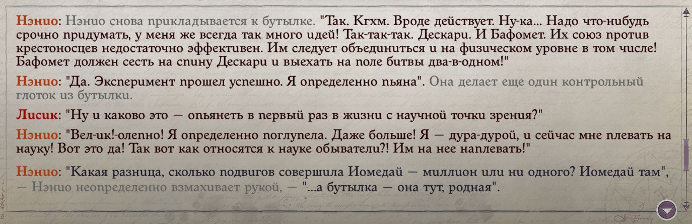 Идем дальше. Сомневаться она начинает гораздо позже, изначально там рельсы у нее в голове. Опять же, твой унылый толстый байт несостоятелен по той причине, что ты не читаешь тексты в игре, а говоришь исключительно свои додумки. Лучший персонаж игры все равно Генка, ну и дед Абеляр.
