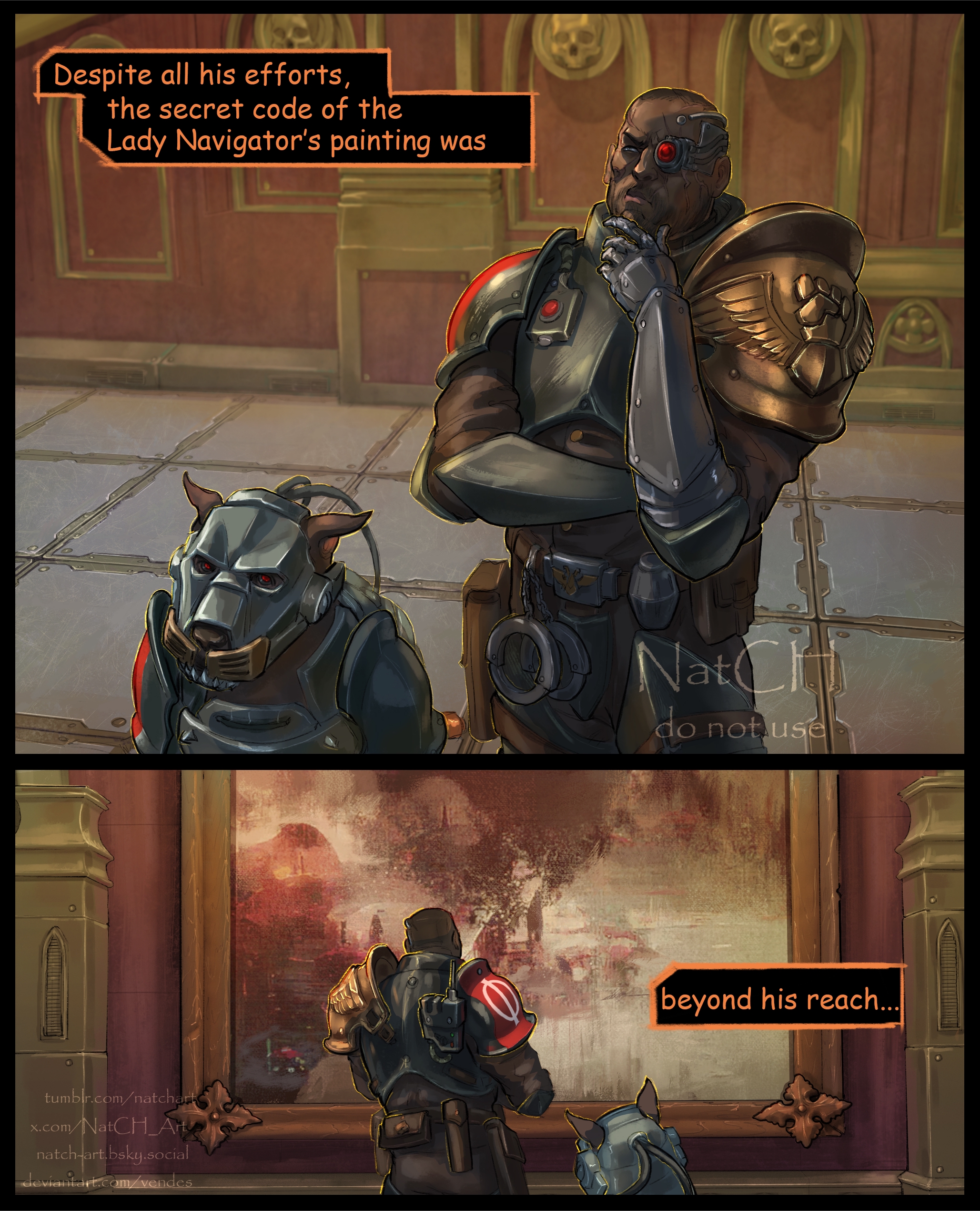 КАЖДОМУ ВАХАЕБУ, ВАХАФАНУ, ЗАЛЕТУХЕ И ЗНАТОКУ ЛОРА ЧИТАТЬ ВНИМАТЕЛЬНО: Совокоты известны крайней разношерстностью своих сюжетов — в одной игре может сочетаться как аниме/трансухи/соя так и самые базированные персонажи. А также известны своим вольным отношением к сеттингу: с Вахой это может вызвать горение жоп. Воспринимайте Rogue Trader как неканоничное произведение или фанфик. Хотите 100% следования "канону" — идите почитайте рулбук.
