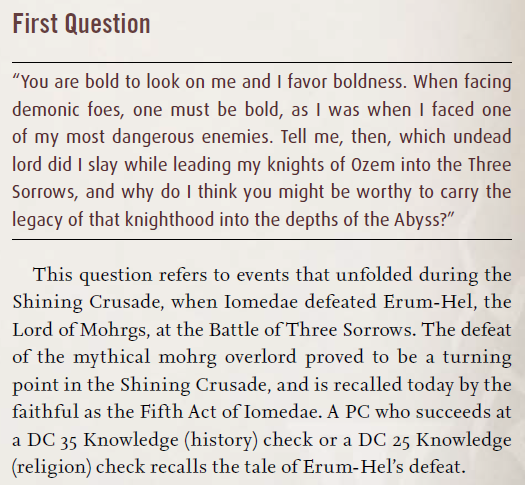 после взятия Дрезена придут три Рыцаря Преисподней как обычно они приходят по сюжету и скажут ты охуенный чел мы идём на беспрецедентный шаг ты не подчиняешься старшим в Ордене, то что ты взял Дрезен засчитывается вместо испытания битвой с призванным дьяволом