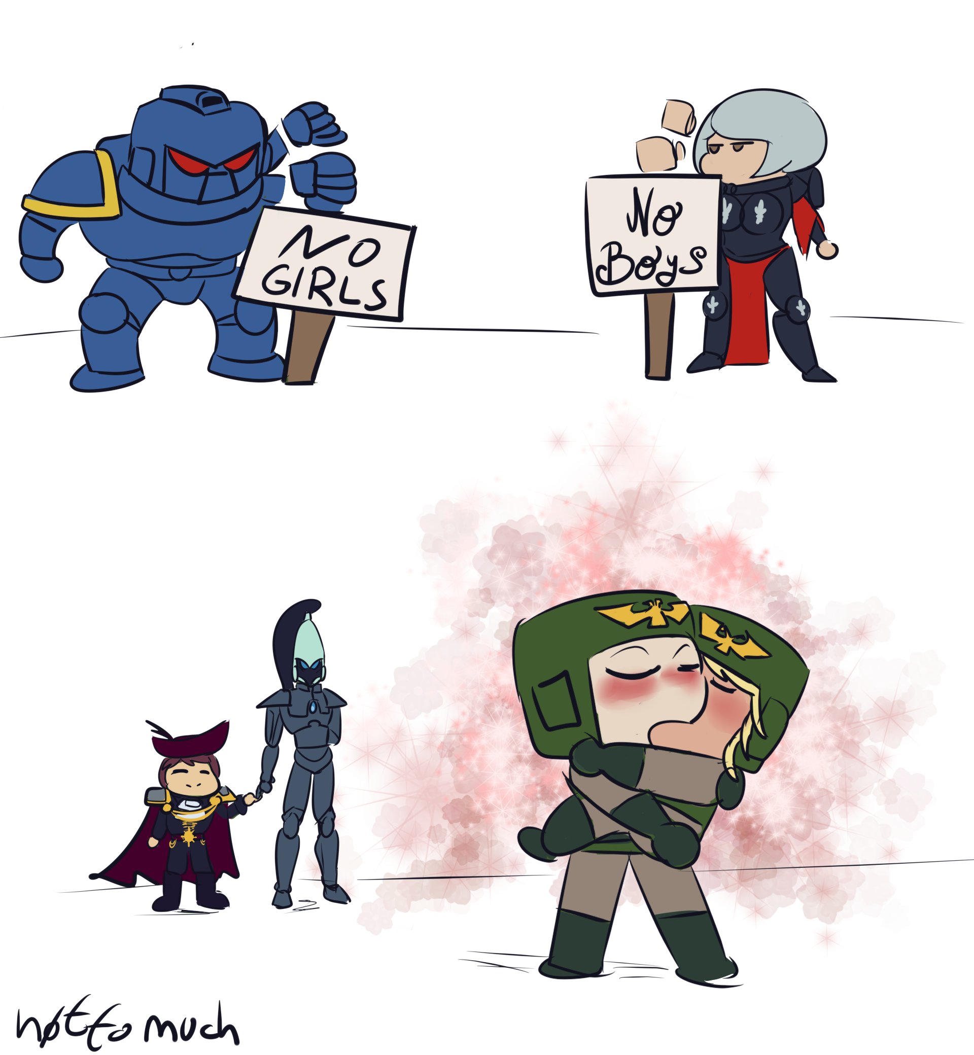 >>50317617 >А меня в Пейсмарине нигра покорёжила, ну охота тебе их добавить - ну есть же целый орден Саламандр, бери не хочу. Нужны азиаты? На тебе Белых Шрамов. У вас там Тираниды напали, хули суповары одни отдуваются? Наберите команду из разных орденов пусть они дружбожвачкой убивают тараканов. И смотреться будет вполне органично.