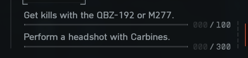 >>50328254 Ну это похоже на задание сделать убийства из каждого типа оружия в 15 матчах, хотя на самом деле нужн осделать 15 убийств на расстоянии больше 150 метров. Лол.