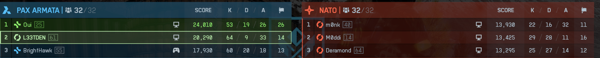 80% матчей заканчивается на отметке в 30 киллов, просто потому что бои в 6рки идут в среднем 15 минут матч и это я говорю про эскалацию и конквест. Брейктроу почти всегда меньше 10 минут, потому что прорвать оборону часто нереально и заканчивается все на 1-2 точке благодаря пиздатому балансу карт. Пехотные режимы на 5-7 минут вообще предназначены.