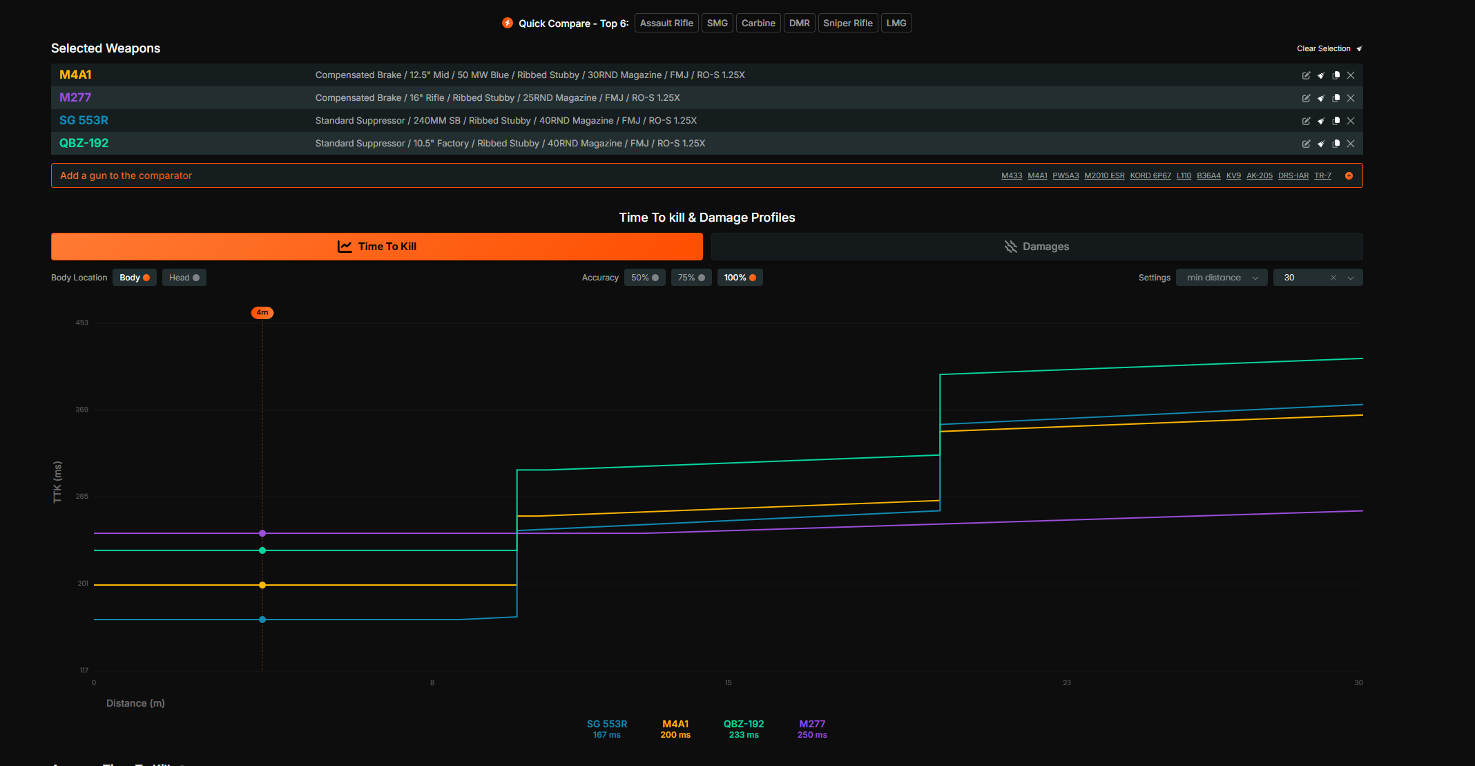 Еще есть отличная сборка G36 для ассолта через макс пресижен чтобы компенсировать ебанутый круг разброса, тоже отличная пушка, но в клозине посасывает, но на +13 метрах уже лучше чем М4А1 и даже с ПП соревнуется по ТТК с учетом того что у них разброса вообще нет.