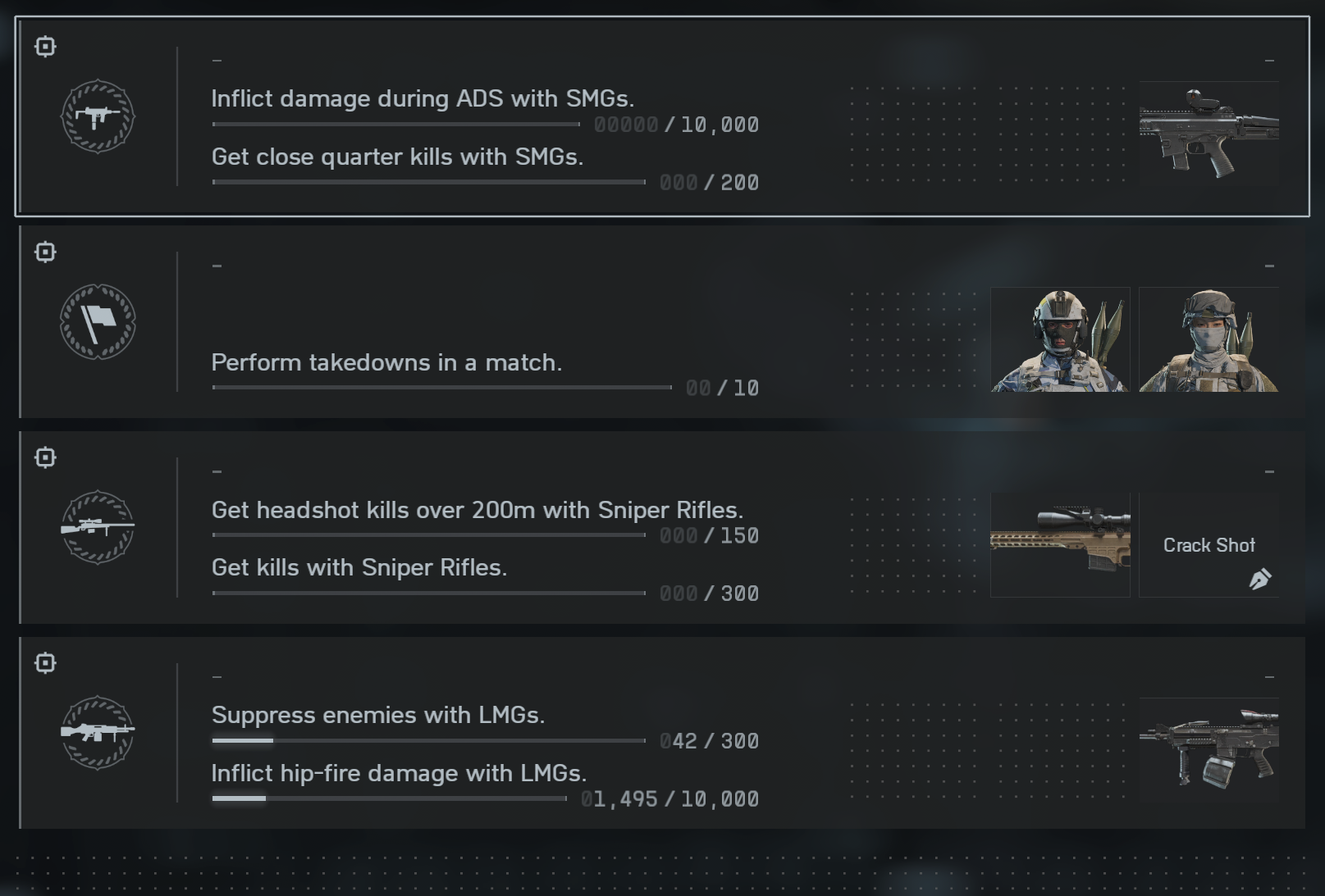 Как тебе 300 хедшотов с карабинов? Часто в реальном бою оформляешь? Или 4к урона с хипфаер на ассолте в упоре? Причем непонятно это за матчи или матч. Или во еще веселый квест, убийство под стан гранатами.
