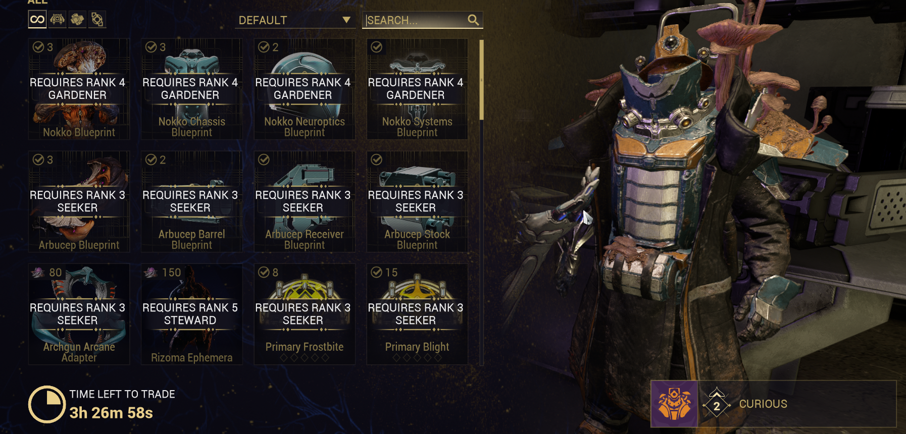 Ну, и с торговлей вопрос в том, сколько ёбли на пустом месте, с наценками от васянов. Некоторые васяны абузят то, что они выкачивают те синдикаты (локу+перрин или гексов+суду) которых так просто не выкачаешь если не упоролся в них самих, и задирают ценники. Особенно учитывая что в любом случае, после первых двух ты уходишь именно в вуаль+меридиан и как бы подзабиваешь на двух старых, чтобы репутацию вуали/меридиану не снижать. Особенно гексо-судеры охуели, со своими парными декурионами, которым нужно 4 куска говна.