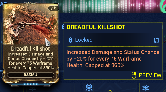 А тут, кстати, всего 1350 хп для максимального буста басмы. На вид - любая рамка с огненным уроном, в которую ты всё равно хуяришь архонтовую живучесть, например. Или рамки в которых стоит мистическое благословение (+24 макс хп с подбора сферок, кап +1300 хп). У меня - броберон всё ещё по приколу с пачкой умбр (чтобы шарить больше брони тиммейтам) и благословением для рофло-жирности.
