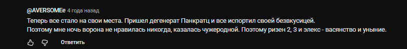 >>50466350 Да лан, чё бухтеть. Я вон скинул видео по ремейку или боёвке г1 г2, всем похуй абсолютно. Пусть пообсуждают немного, как ту же дрову. Своего треда у них вряд ли будет.