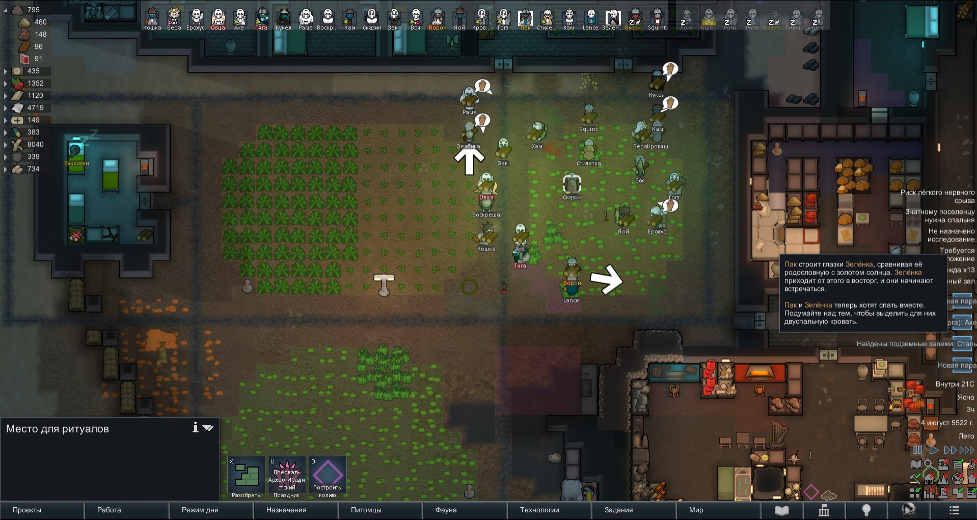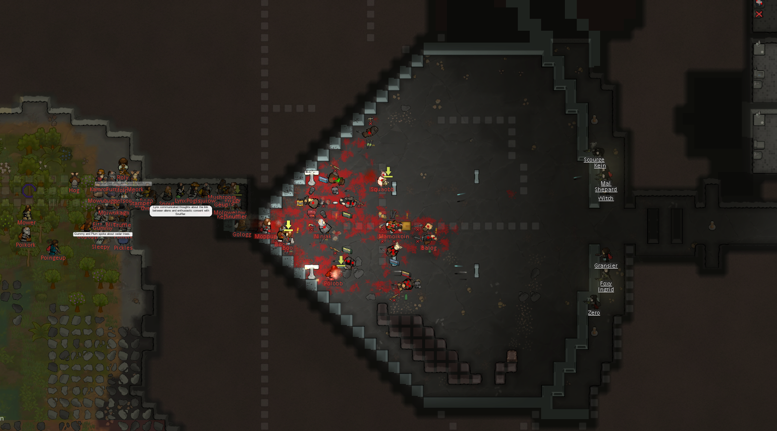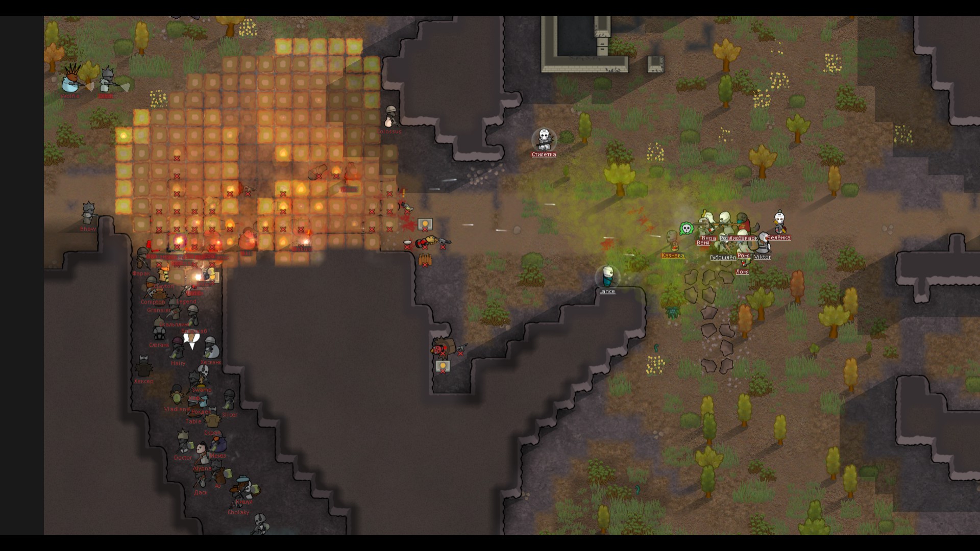 >>50352825 У меня там не было ворот, тут они не были до конца построены, погоды это не меняет. Просто интересный опыт, обычно я либо сваливаю всеми бомжами, либо у меня нормальные пешки которые кое-как могут размотать рейды кроме специальных типа карателей. В общем, сейчас достроил стенки и турели, поставил тренажёры и набрал свежих бомжей, посмотрим. Старвинг бандитов я прикормил до Allies (кошками, жаль нельзя едой или нанять их в сквад копать мне грядки), даст бандитов я похитил босса, ниндзя пока не трогал, в идеале хочу размотать всех кто мог бы его мне прийти рейдом, потом построить ещё аутпост и притвориться Третьей империей.