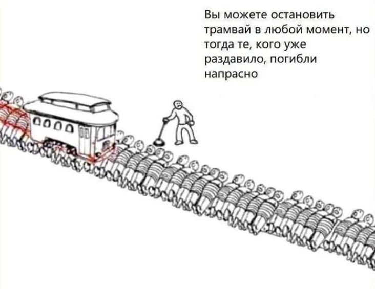 >>50385066 >>50385116 Вы в школе физику прогуливали или что? Давайте иначе, раз с лошадьми у вас туго: на вас едут жигули, у вас есть пика, дохуя она вам поможет? Базара ноль вы повредите двигатель машины и та завтра уже не сможет ездить, но сегодня она вас размажет паштетом по земле, просто потому что уже разогналась, а вы на её пути.