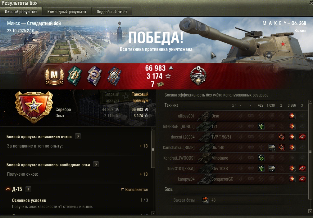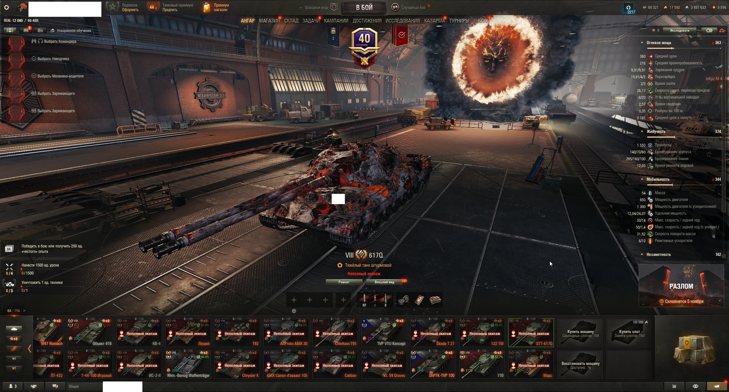 Поясняю додикам , которые говорят , что танк дерьмо и скулят как девочки) Плюсы :идеальная стаба, броня есть, особенно в бортах , что-то да отбивает , если встать от борта то его хер пробьешь ,1600 хп, -8увн, хороший обзор как для тяжа, халявный , очень быстрый залп 2 сек , дозарядка, 360 урон с 2 выстрелов, основной снаряд бб 216 более чем хватает, тем более с новым балансом где ты играешь в основном с 8 ми , так ещё и стоимость его составляет копейки 530 серы , то есть 720 урона за 1060 серы , поэтому для фарма танк шикарный , далее у танка турбины , 6 шт тебе хватит на два боя , тараном сносить только в путь , стрелять залпом ахмренно у тебя всегда летят снаряды в цель , при том что оба , броня какая никакая есть , лучше ли этот танк об 703 ? Конечно же ! Ааа ну вам постоять об башни надо и ничего не попробовать с подколом в 221 , с ценой в 1180 серы , что в 2 раза дороже чем этот , вопрос же опять фарма . Крч отыграл на нём 103 боя средуха 2800 , чисто на бб Фарм 7 300 000 без резервов, ну и ещё раз повторюсь танк халявный ! Че ещё надо ))