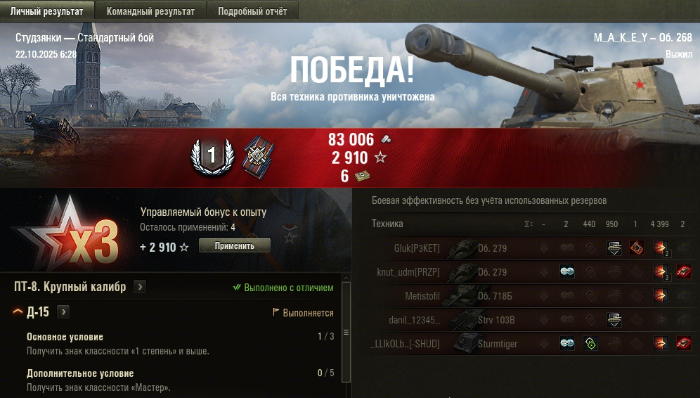 >>50349614 > мотивируя меня не заходить в игру как минимум в период июль-сентябрь Сеймыч, я в принципе так и хотел поступить, в мае еще дропнул игру, но сорвался когда анонсировали ап моего любимого Хэвика плюс ДР МТ плюс патч Разворот и вот я опять в игре. Хотя в 23 я себе так Кировца залутал. Но, с другой стороны, хотя бы ЛБЗ на 279 выполнил, на апнутом то Хэви.