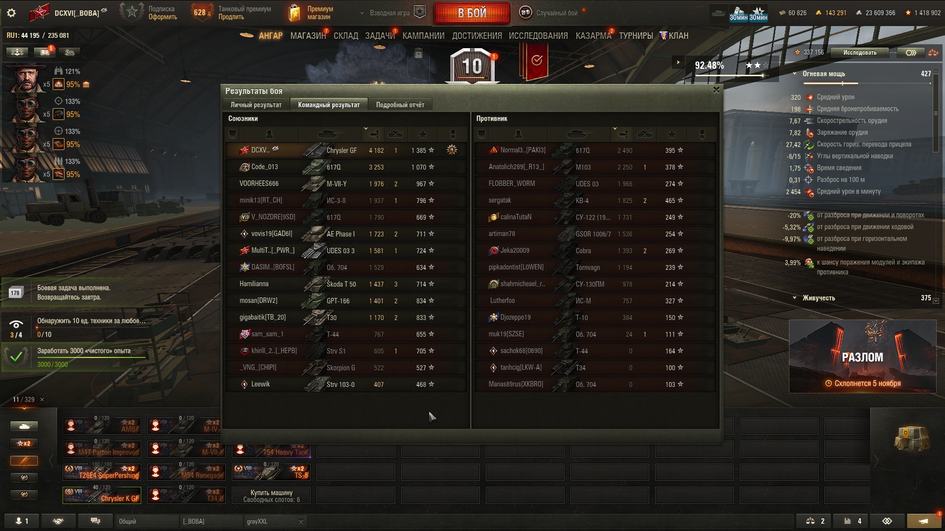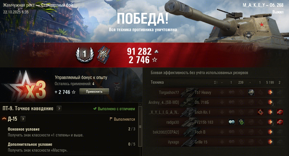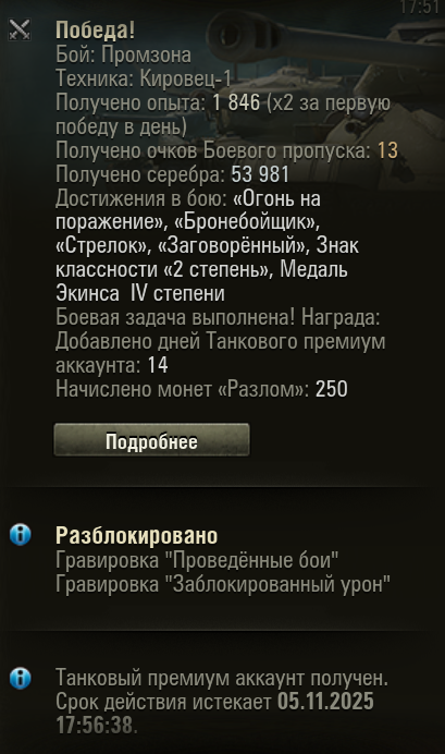Поиграл на двусвольном китайце, как же он страдает. Пытаюсь поймать дзен, как же всё-таки на нем играть, но пока не поймал. Танк не едет, не попадает, пробитие слабое. Как обычно в этой игре: взял новый танк и ломай голову как довести его до ума. Хуже Феникса. Единственное объяснение зачем я его взял это хайп и вызов самому себе: смогу ли я получить приз. Смог. Лучше бы я выспался.