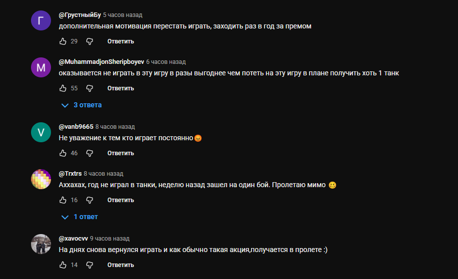 Вот я замечу что они опять дали танк тем кто не играет, мотивируя меня не заходить в игру как минимум в период июль-сентябрь в след году чтобы получить награду 8 лвл танк прожету. Не играешь - дают танк. В чем я неправ?
