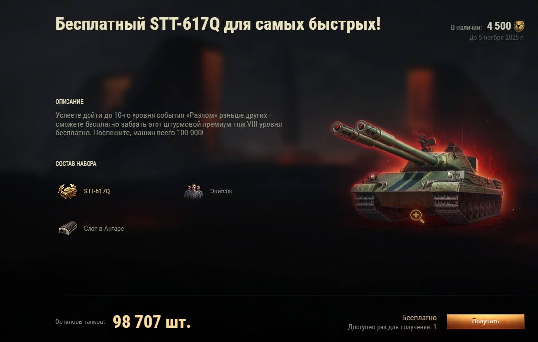 СУТЬ БАГА БЫЛА ТАКАЯ. ФУЛЛ ВЗВОД РЕГАЛИ КАТКУ НА 5 ЛВЛАХ НА 5 УРОВНИ СЛОЖНОСТИ. ГДЕ 10 ЛВЛ НА ВОЛНАХ. ЗА 3 МИНУТЫ ТВОЮ БАЗУ ЗАБИРАЮТ И ТЫ ПОЛУЧАЕШЬ ЗА ПОРАЖЕНИЕ 100 ОЧКОВ. 3 ИГРЫ = 1 ЭТАП. 30 ИГР = ФУЛЛ ПРОХОЖДНИЕ. К ОБЕДУ ТАНКОВ 10 УЖЕ В АНГАРЕ ХАЛЯВНЫЙ ТАНК))))