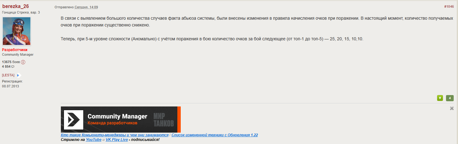 >>50360001 У них более-менее норм получилось хорошо сделать расчет чистого опыта в рандоме, там не только урон но и дохуя всякого идет в зачет, хоть и не без косяков, но все же.