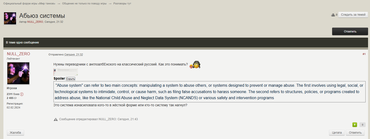 >>50359499 >ниже 2500 вн8 по плану никогда не выступлю Даже там может быть полное дно. По сути тут всего кланов 20, может быть 30 куда можно вступить, все остальное это дурка и все кто в кланах варился их знает, там составы не меняются почти десятилетиями. Клановая хуйня это отдельный вид искусства, а общение в нем, ммммммм. Не дай бог играть со стриммером, особенно медийным, вони будет от поражения ояебу. На десяток стриммеров две адекватные и обе тян. Шотник так вообще завизжал на весь дискорд от двух поражений при винрейте в 80% за два часа. Ни в одной другой онлайн игре не видел такой дурки. Лехи кстати иногда попадаются очень даже адекватные, но там буквально селекцией надо заниматься. >>50359511 >а кто-то нахуй всех пошлёт и всё испортит, даже зная что он полный ноль и абсолютно не шарит в теме Да вот хуй там. Танкист упертый шо баран. Ему совершенно поебать что у него 47%, а у того кто им командует 65%. Ему просто невозможно доказать его неправоту, он абсолютно уверен в том что именно его мнение верное.