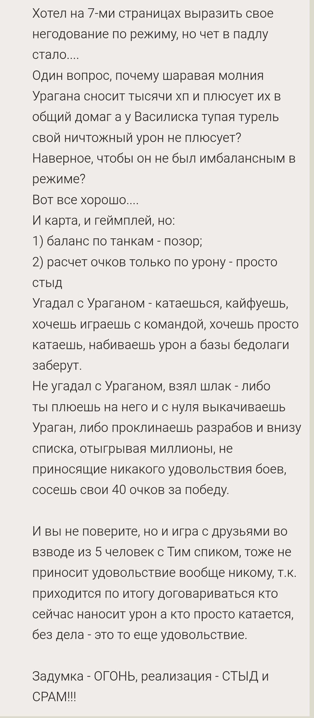Вот я 10 боев сыграл в рандоме и еще каток 5 в режиме новом, ощущение шебмрил, как в говно наступил. Чтобы я кому-то рекомендовал вернутся в это? Серьезно? Чтобы меня потом не только обоссали но еще и отпиздили?
