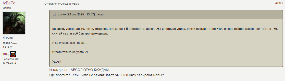 Не знаю, как вам, но мне этот ивент понравился больше другой параши, вроде вафли, гоночек и прочего кала. И я думаю, что львиная часть того, что мне эта хуйня нравится - это чисто мои загоны на то, чтобы быть первым, а значит потеть и пылисосить все, что только можно и максимально эффективно. И я не думаю, что грече этот ивент вообще понравится. С теми крохами очков, что они получают за бои - это полный пиздец.