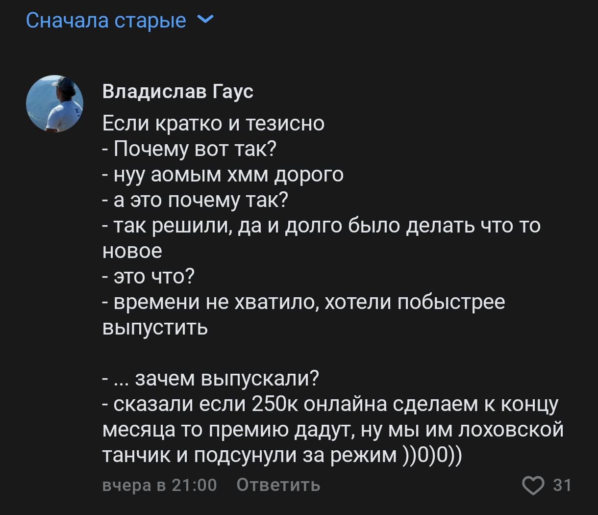 Зато голды насыпали и према 3 месяца дали, охуеть теперь.