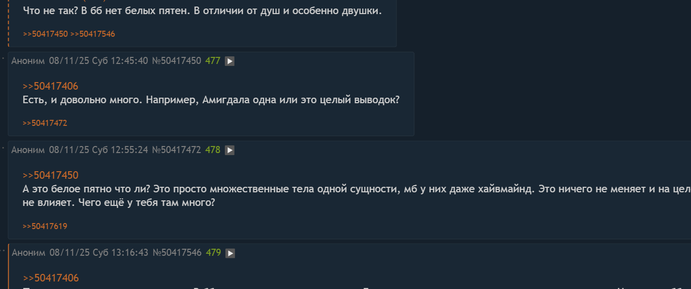 >>50443879 Пальцы неполноценные дурачки, их просто обманула клика марики чтобы пользоваться их уникальными способностями. Метир неполноценная мамаша породила неполноценных пальцев потому что ее ковырнули ноксы своими ножичками за это на них сбросили астеля но было уже поздно. Имир единственный кто действительно связался с великой волей что характерно ее символ это не золото а дыра от бублика но был за это опиздюлен игроком по беспределу. Элден глист не пришелец в олтичие от метир которая получает доп урон как и все остальные пришельцы а воплощение древа эрд, такое же как и пеньки у карликовых деревьев. Как по мне в елде слишком мало пришельцев, а их влияние незначительно, скорее это их все используют а не они. >>50443869 Руна малении это реген после ударов а не гниль. Руна микелы это майндконтроль и он спадает после отказа от руны, а потом вдруг оказывается что майндконроль при нем. Как эта хуйня работает похоже неизвестно даже бабадзаки
